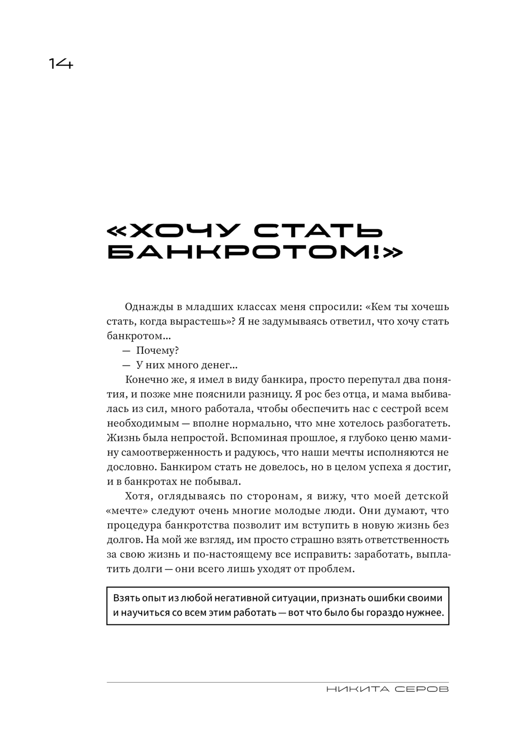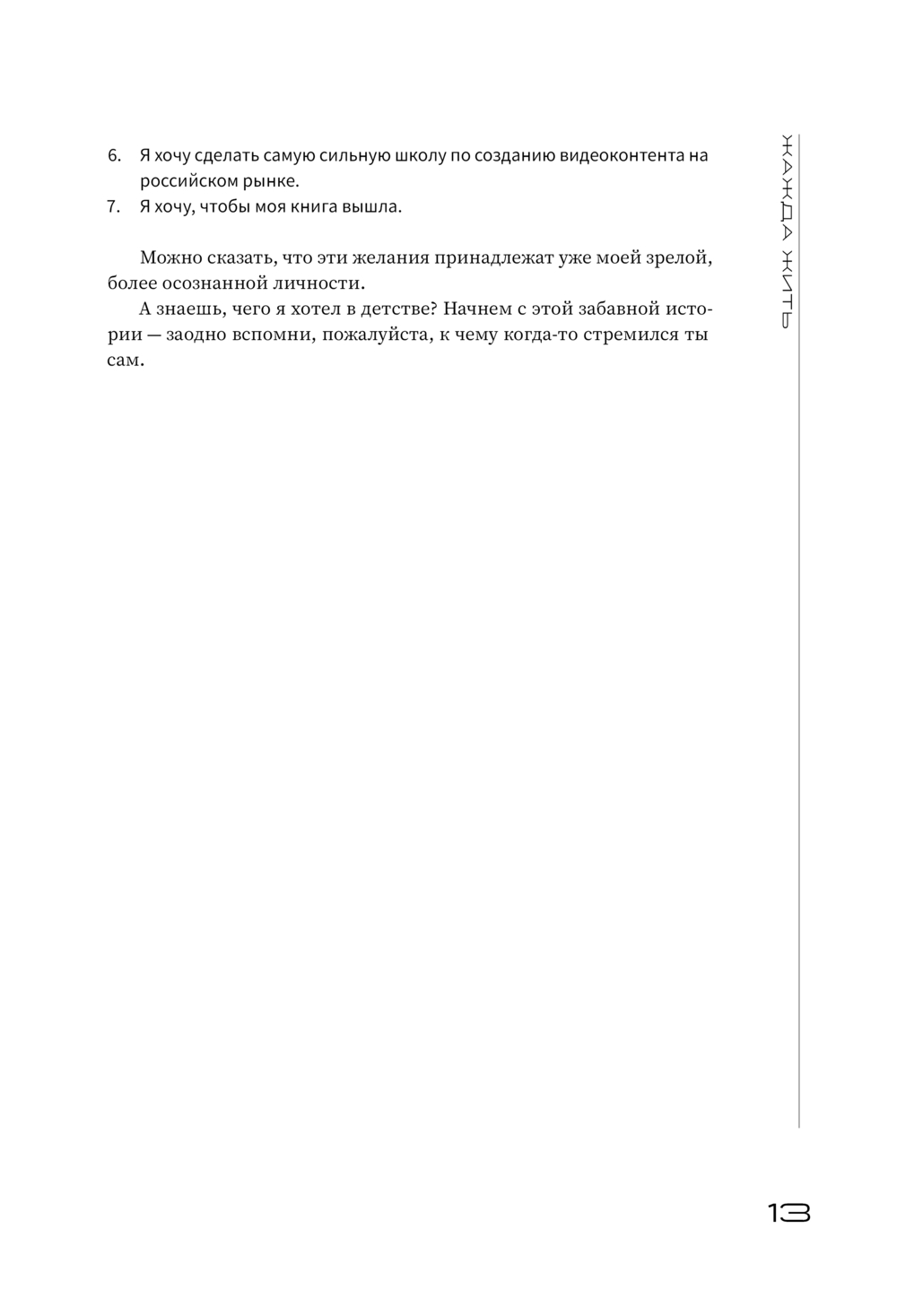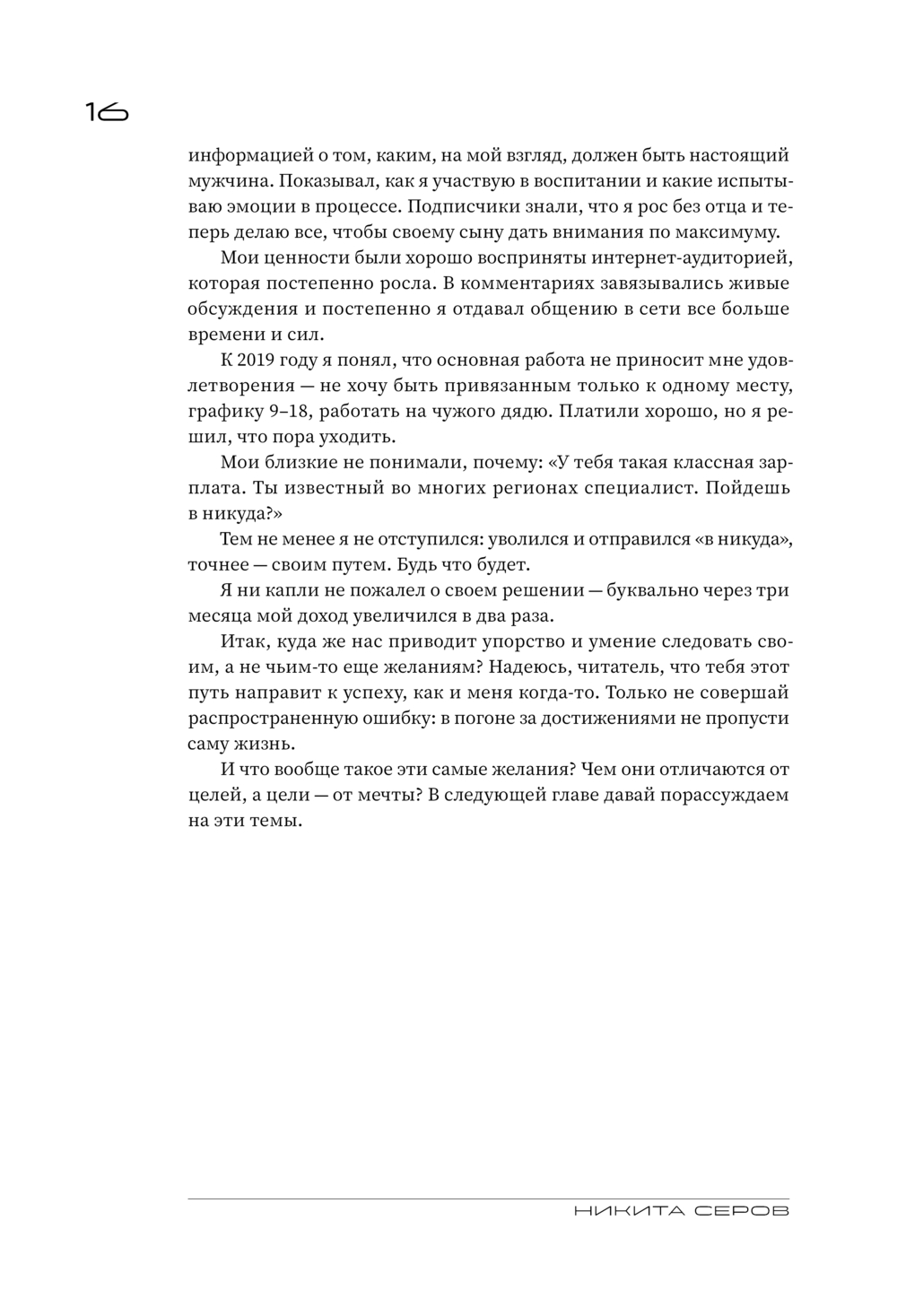 В книге Никита расскажет об интересных моментах своего жизненного пути, о том, как он пережил болезненный развод, о людях, на которых он оказал влияние и которые оказали влияние на него, а также предложит упражнения, которые помогут вам разобраться, кто вы на самом деле, какая она, жизнь вашей мечты, и как к ней прийти.