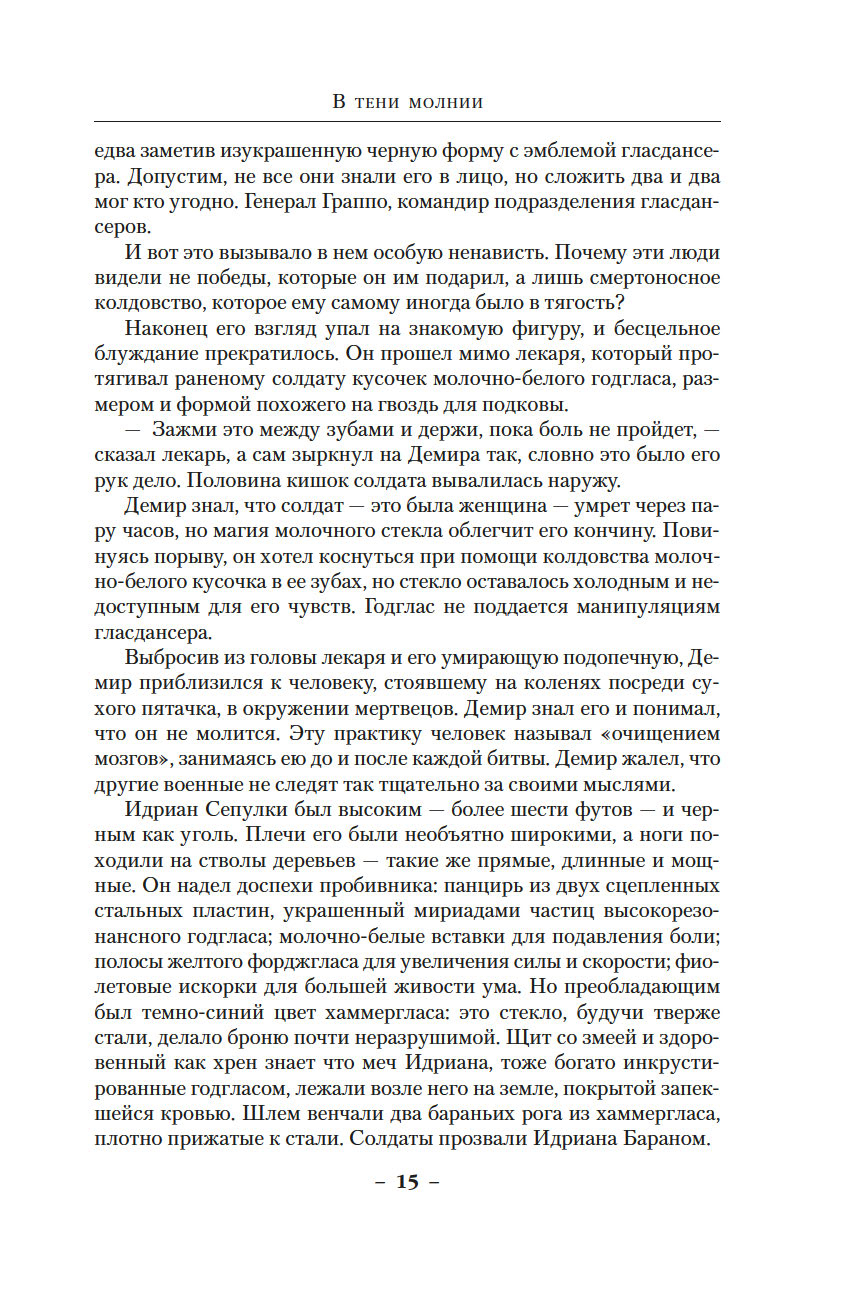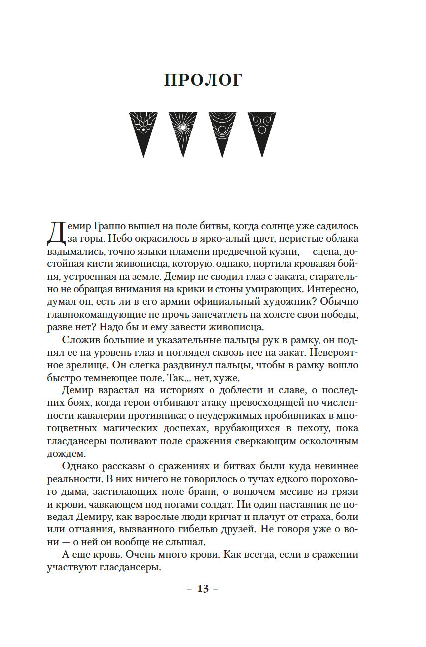 Все меняет жестокое убийство его матери, видного имперского политика. Демир возвращается в Оссу, столицу империи, чтобы занять место главы семьи и раскрыть преступление, и внезапно узнает, что во всем мире уже исчерпаны запасы сырья для годгласа – магического стекла, без которого немыслимо существование цивилизации. А это означает, что он должен срочно заключить союзы, собрать под свое знамя друзей и соперников, дать отпор могущественным семьям-гильдиям, пытающимся прибрать к рукам остатки драгоценного сырья... Он должен готовиться к войне, которая затмит все прежние войны.