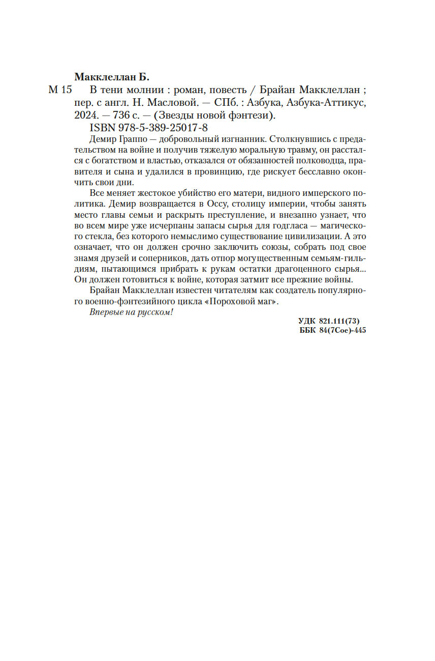 Брайан Макклеллан известен читателям как создатель популярного военно-фэнтезийного цикла "Пороховой маг".