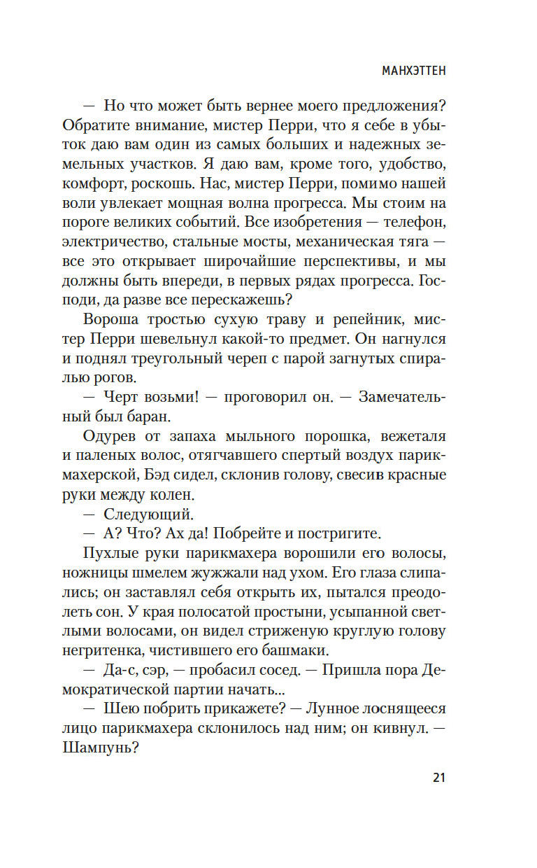Роман "Манхэттен" является одним из важнейших в творчестве Дос Пассоса и одним из самых смелых его экспериментов. Цепочка хаотично связанных судеб в кипящем котле целеустремленного, энергичного, но равнодушного и жестокого города – матрицы всех мегаполисов мира – создает необычайно острое ощущение времени между "паникой 1893", которой завершился "позолоченный век" восстановления после гражданской войны Севера и Юга, и колоссальным биржевым крахом 1929 года, погрузившим страну в Великую депрессию. Ревущие двадцатые, время модернизации, бурного развития и самых смелых экспериментов.