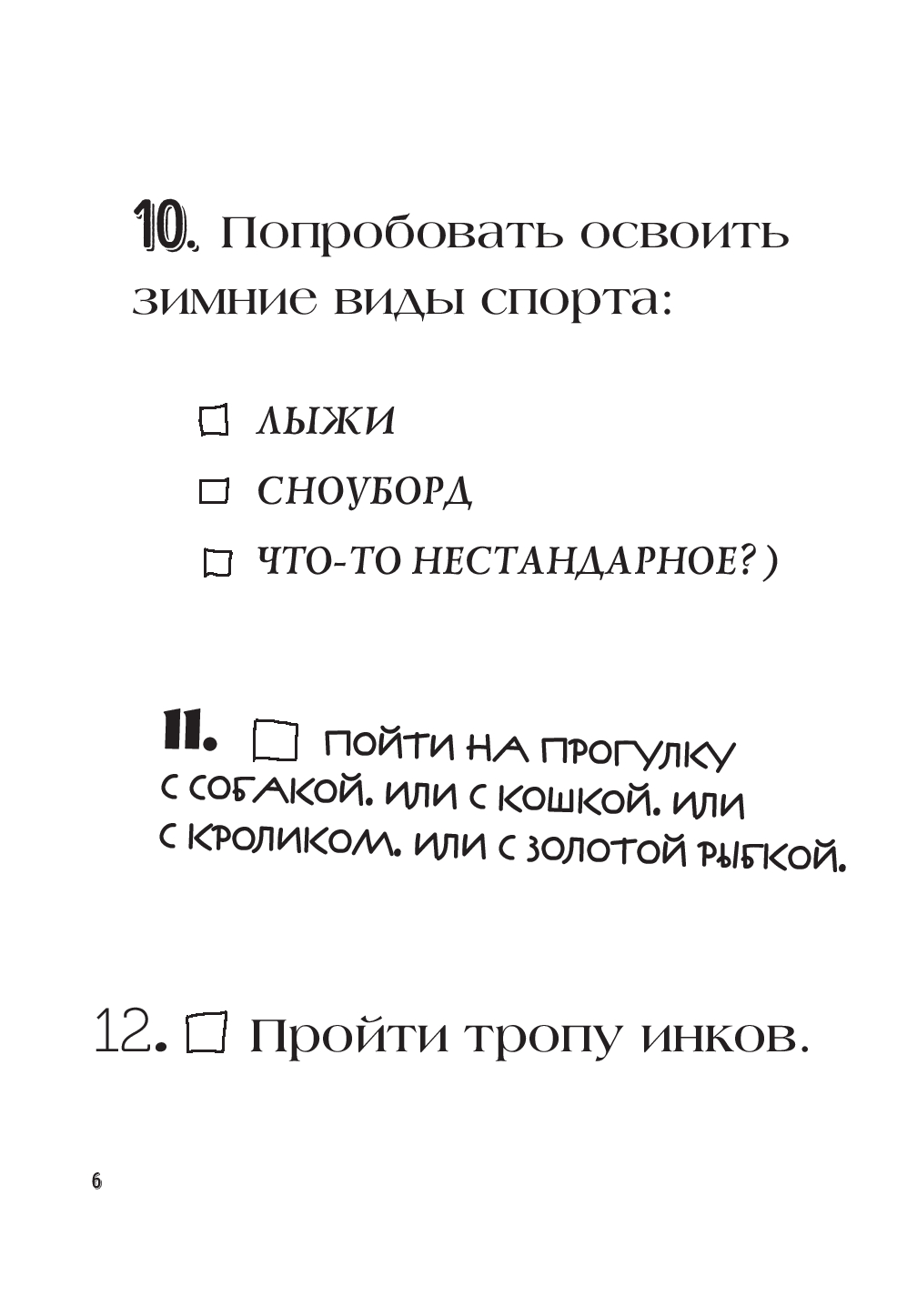 О чем вы всегда мечтали, но боялись попробовать? Возможно, пришло время отбросить все страхи и устремиться навстречу своим желаниям? Предлагаем вам список заданий, которые сделают вашу жизнь ярче! Думаете, что это невозможно? Просто начните! Примите самые простые вызовы и посмотрите, как начнет меняться ваша жизнь!