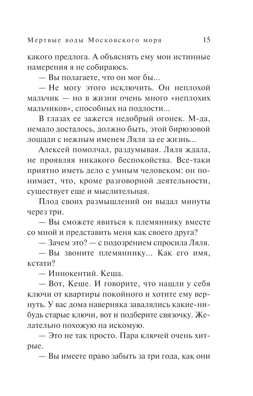 Афанасий Карачаев найден мертвым в своей квартире. Официальное заключение о смерти указывает на сердечную недостаточность, но Ляля, любившая Карачева, этому заключению не верит. Она обращается к частному детективу Алексею Кисанову, который берется за дело. Очень скоро становится ясно, что Карачаеву помогли отправится на тот свет. Но это был первый и последний ясный пункт в этом деле: дальше – сплошные загадки. Самым таинственным образом исчезает дочь Афанасия Карачаева, – и детектив ищет ее следы в темных водах Московского моря. Версии множатся, как молекулы в органической химии. Наследство? Бизнес-интересы? Месть брошенной любовницы? Никогда еще у Алексея Кисанова не было такого мутного дела! Разгадка блеснет только в самом конце...