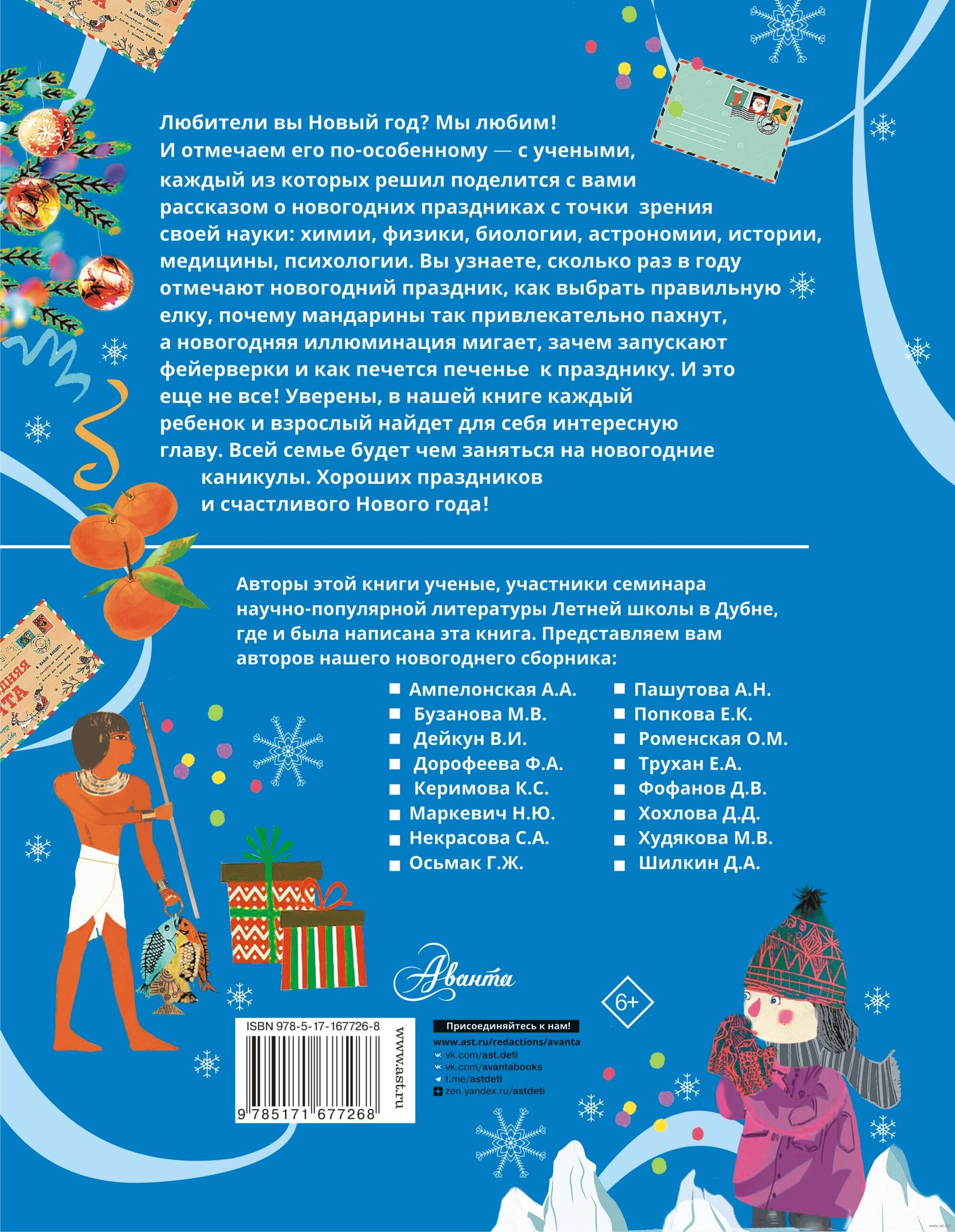 Хотите отметить Новый год нестандартно, по-особенному? Тогда доверьтесь помощникам Деда Мороза и.. откройте эту книгу. Каждая ее глава посвящена какой-то одной теме: елке, снежинкам, гирляндам, фейерверкам, пряничным печенькам, мандаринам, чудесному настроению – всему тому, что окружает нас в этот праздник. Пополнить свои знания и совершить много открытий вам помогут физики, химики, биологи, астрономы, психологи и историки. Проведем новогодние каникулы с пользой!