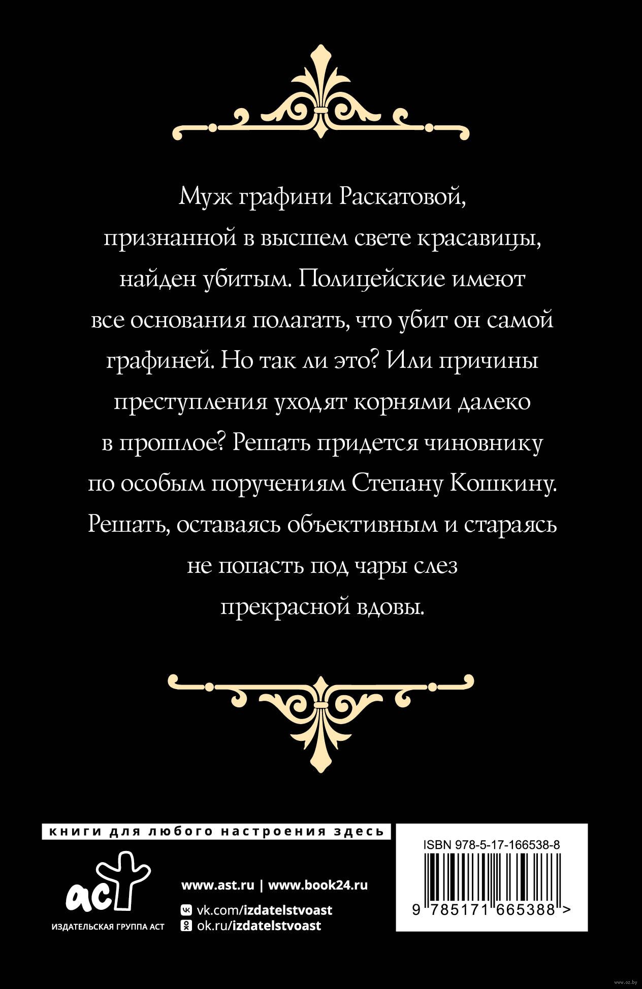 Муж графини Раскатовой, признанной в высшем свете красавицы, найден убитым. Полицейские имеют все основания полагать, что убит он самой графиней. Но так ли это? Или причины преступления уходят корнями далеко в прошлое? Решать придется чиновнику по особым поручениям Степану Кошкину. Решать, оставаясь объективным и стараясь не попасть под чары слез прекрасной вдовы.