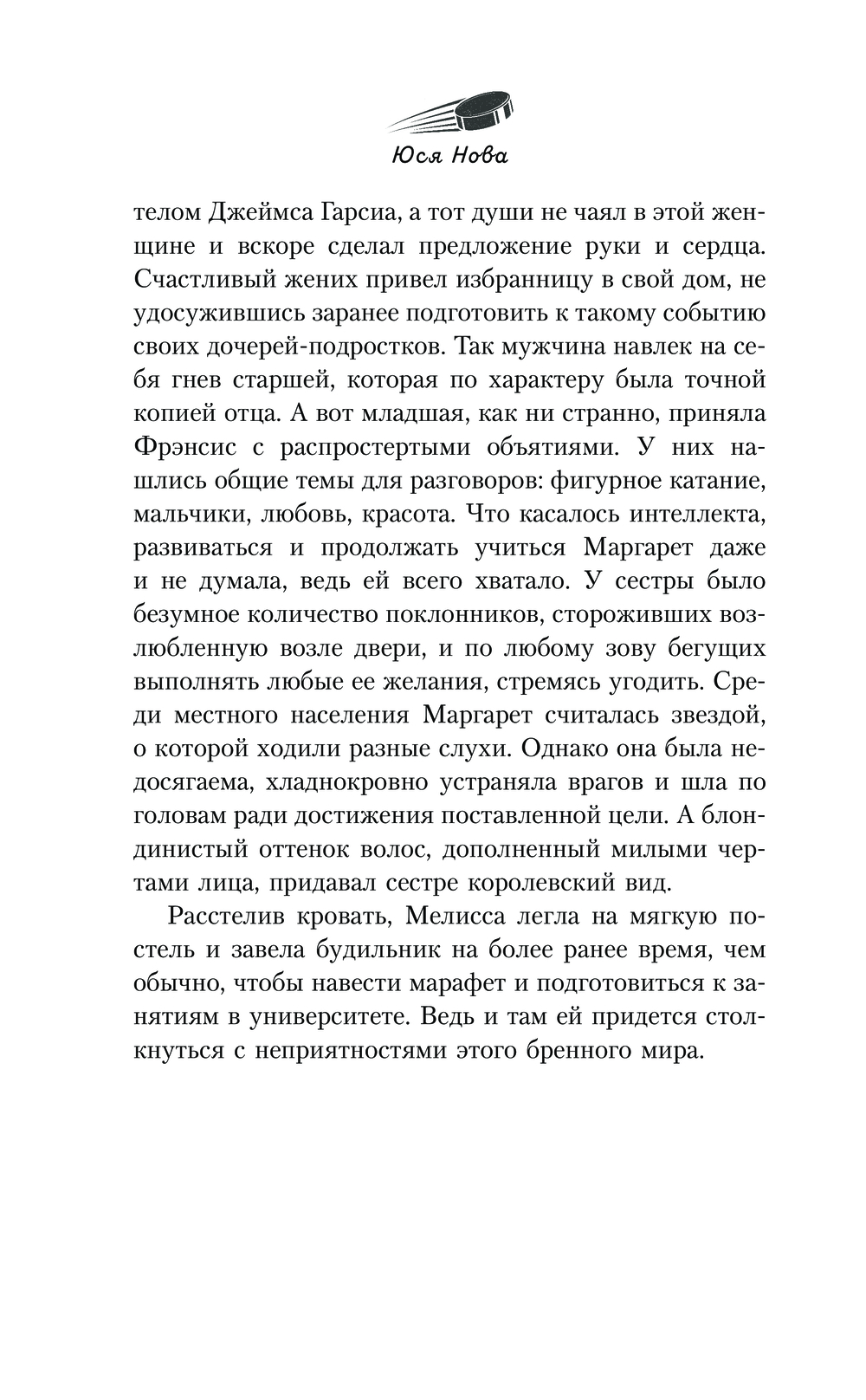 Мелисса Гарсиа – профессиональная хоккеистка и капитан женской сборной, студентка Университета штата Орегон и девушка, не оправдавшая ожидания родителей. Она зациклена на карьере, не нуждается в отношениях и старается избегать внимания парней, особенно одного, которого ненавидит.