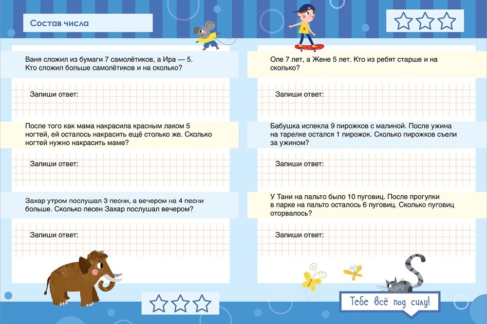 В этом пособии более 200 заданий для развития базовых математических навыков, необходимых для успешного старта учёбы в школе. В основе методики лежит индивидуальный подход и обучение по принципу от простого к сложному. Книга подойдёт детям от 5 до 8 лет в зависимости от уровня подготовки.