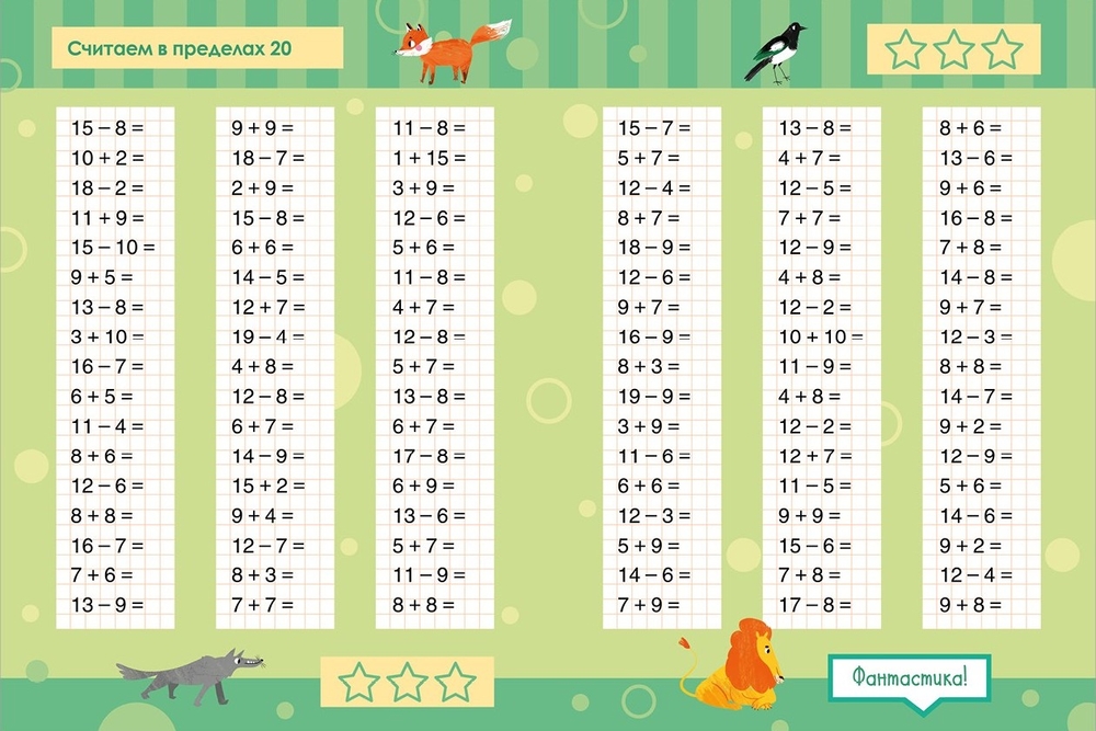 Математика. Учимся решать примеры и задачи. Счёт в пределах 20