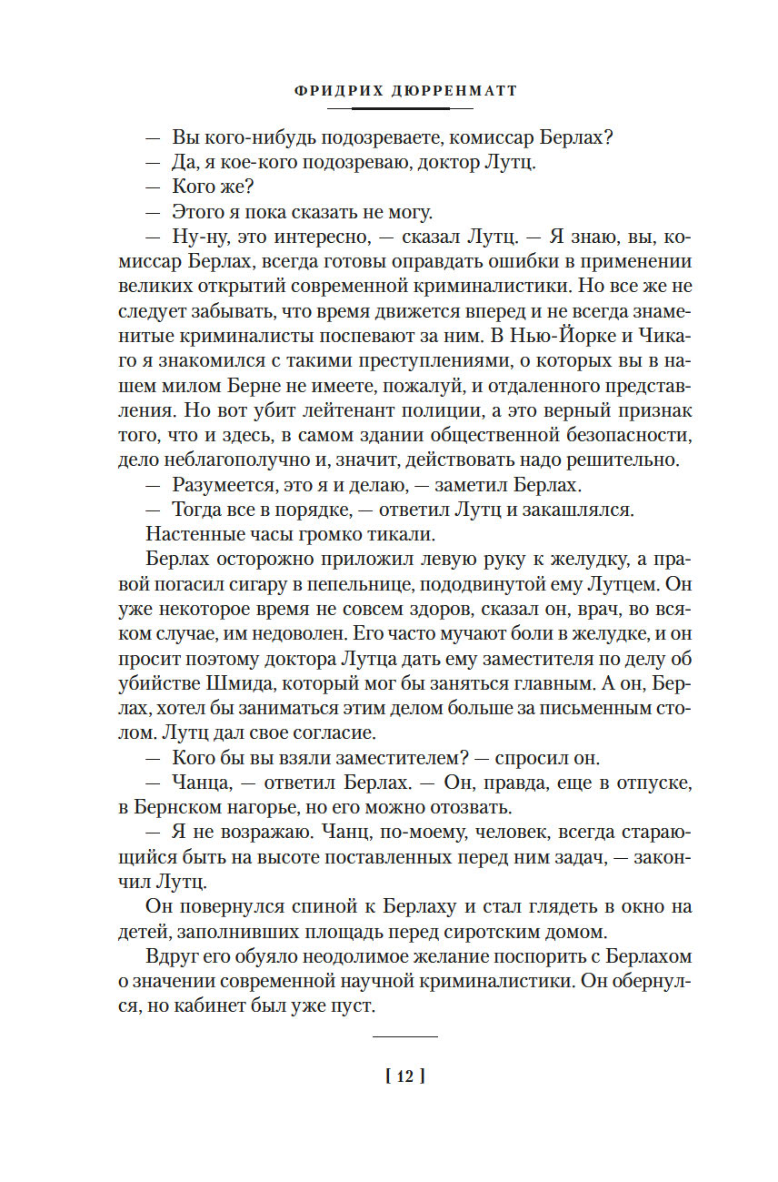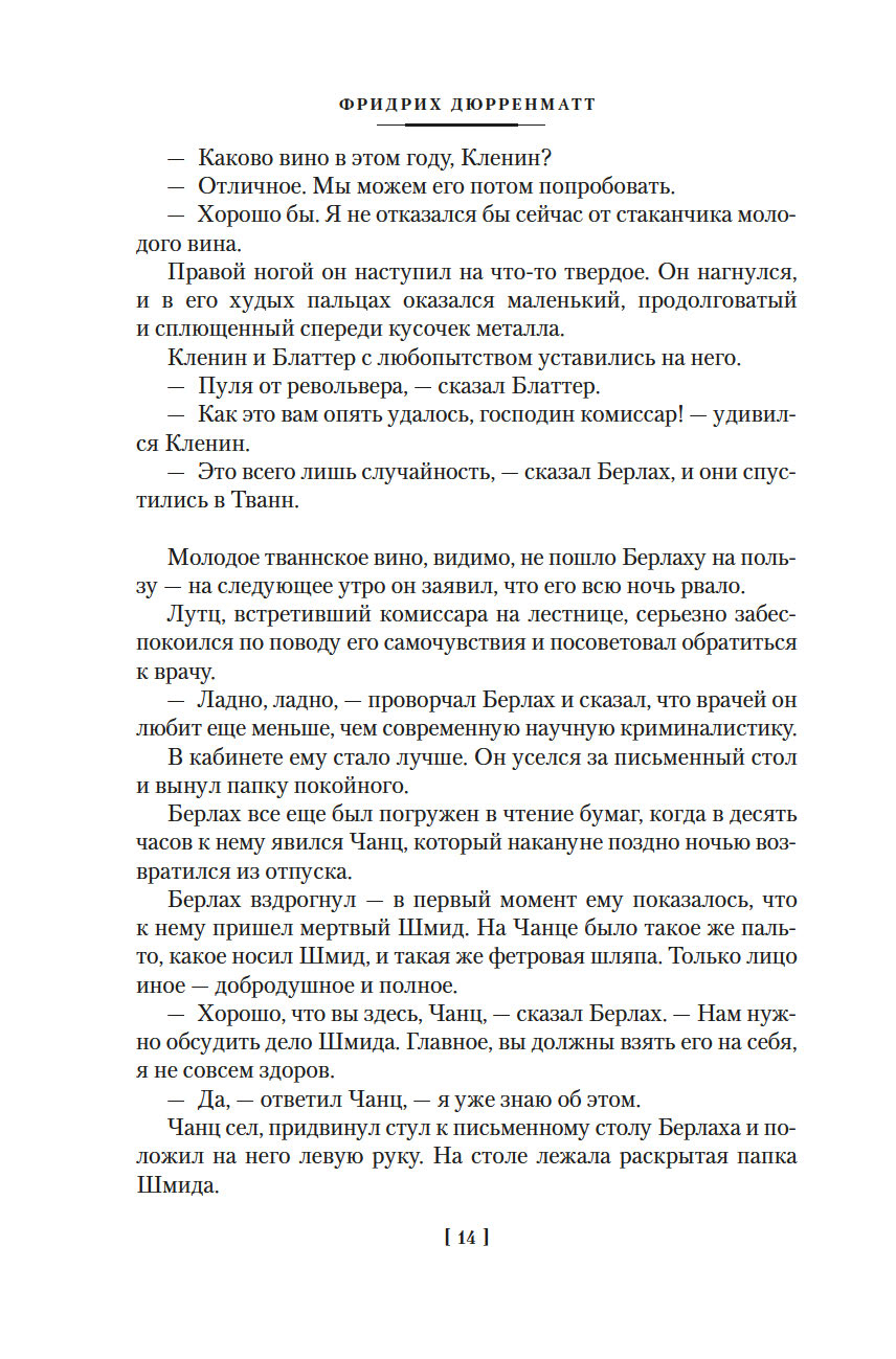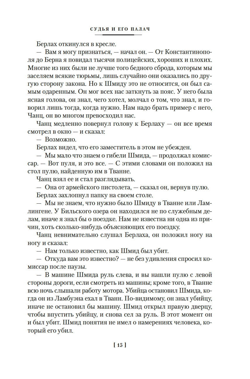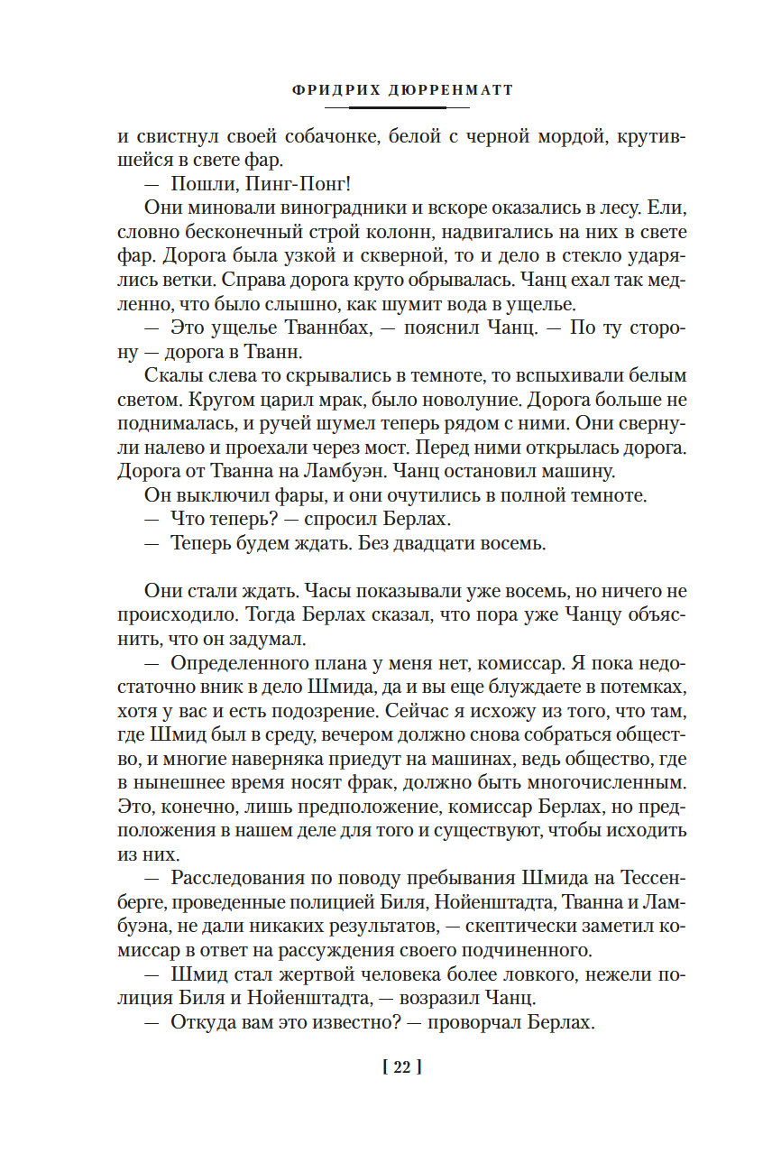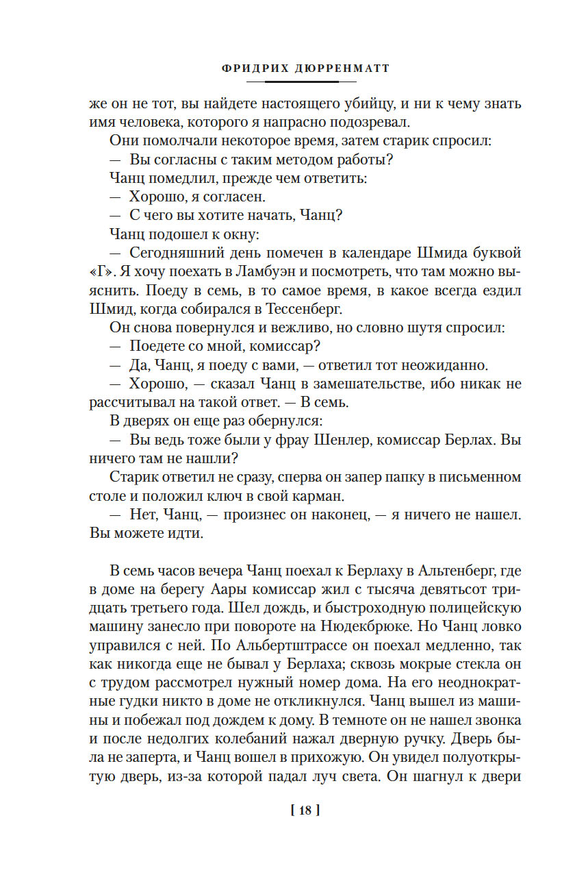Фридриха Дюрренматта часто называли мастером невероятных сюжетов. Прославленный швейцарский писатель признавался, что писать детективы его заставляла нужда. Пожалуй, великолепный стилист и мастер интриги здесь несколько лукавил. Потому что именно этот жанр принес Дюрренматту широкое признание. Его романы и повести, такие как "Судья и его палач", "Обещание", "Подозрение" и другие, считаются эталоном детективного жанра. Искусно сотканная интрига, держащая в напряжении до последних страниц, стремительно развивающиеся события, эксцентричный главный герой, неожиданные повороты сюжета – все это характерные составляющие детективов Дюрренматта. Впрочем, следует уточнить, что его писательское дарование не было ограничено рамками одного жанра, и ряд произведений настоящего тома выходит далеко за пределы обыкновенных детективных историй...