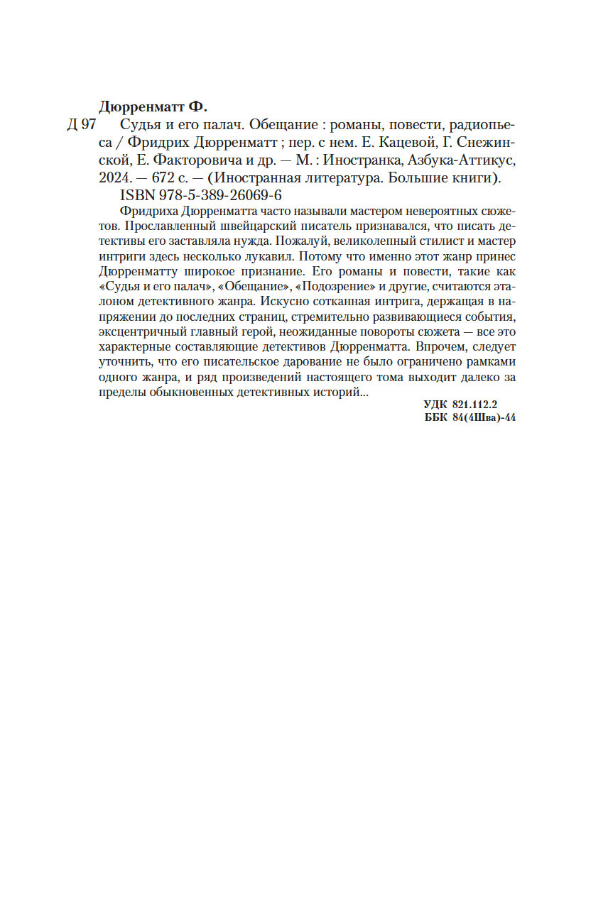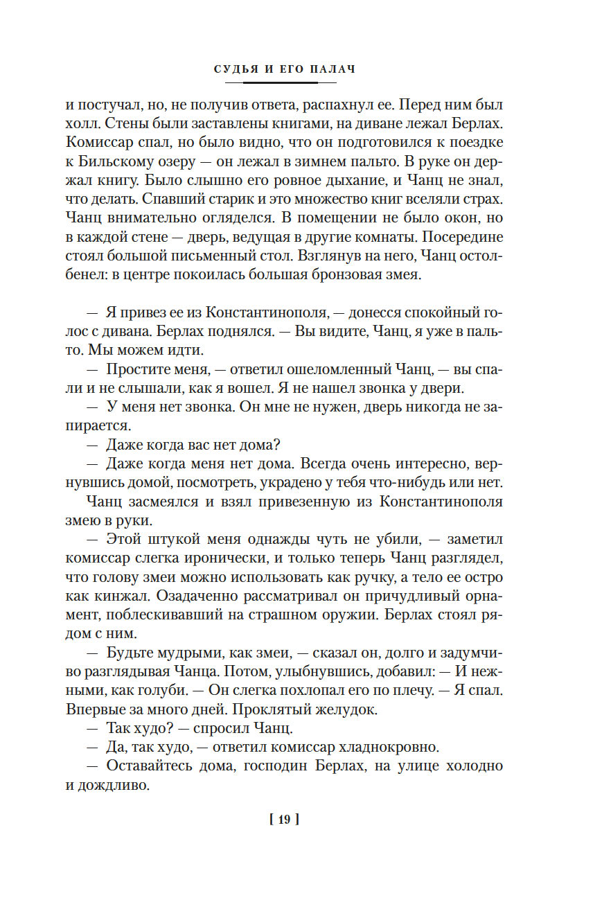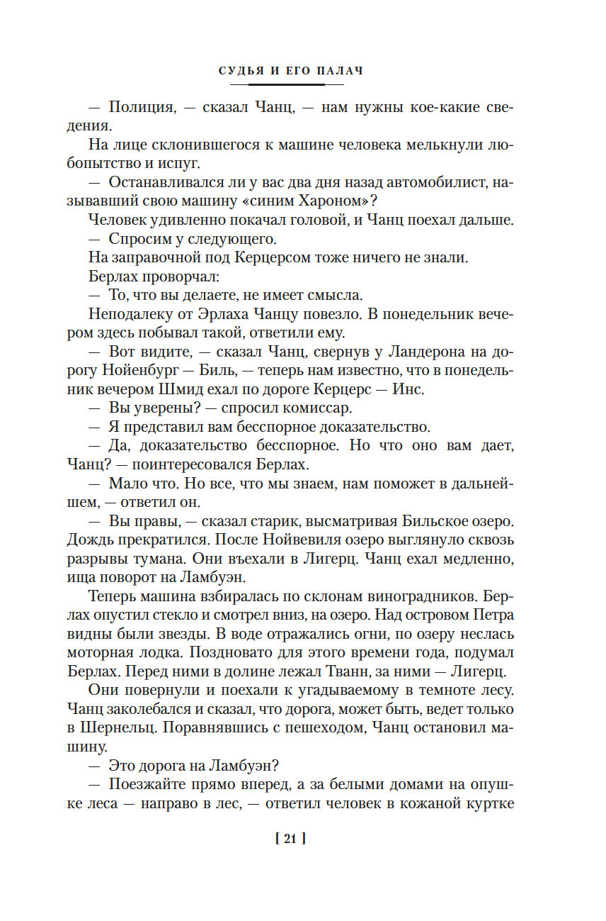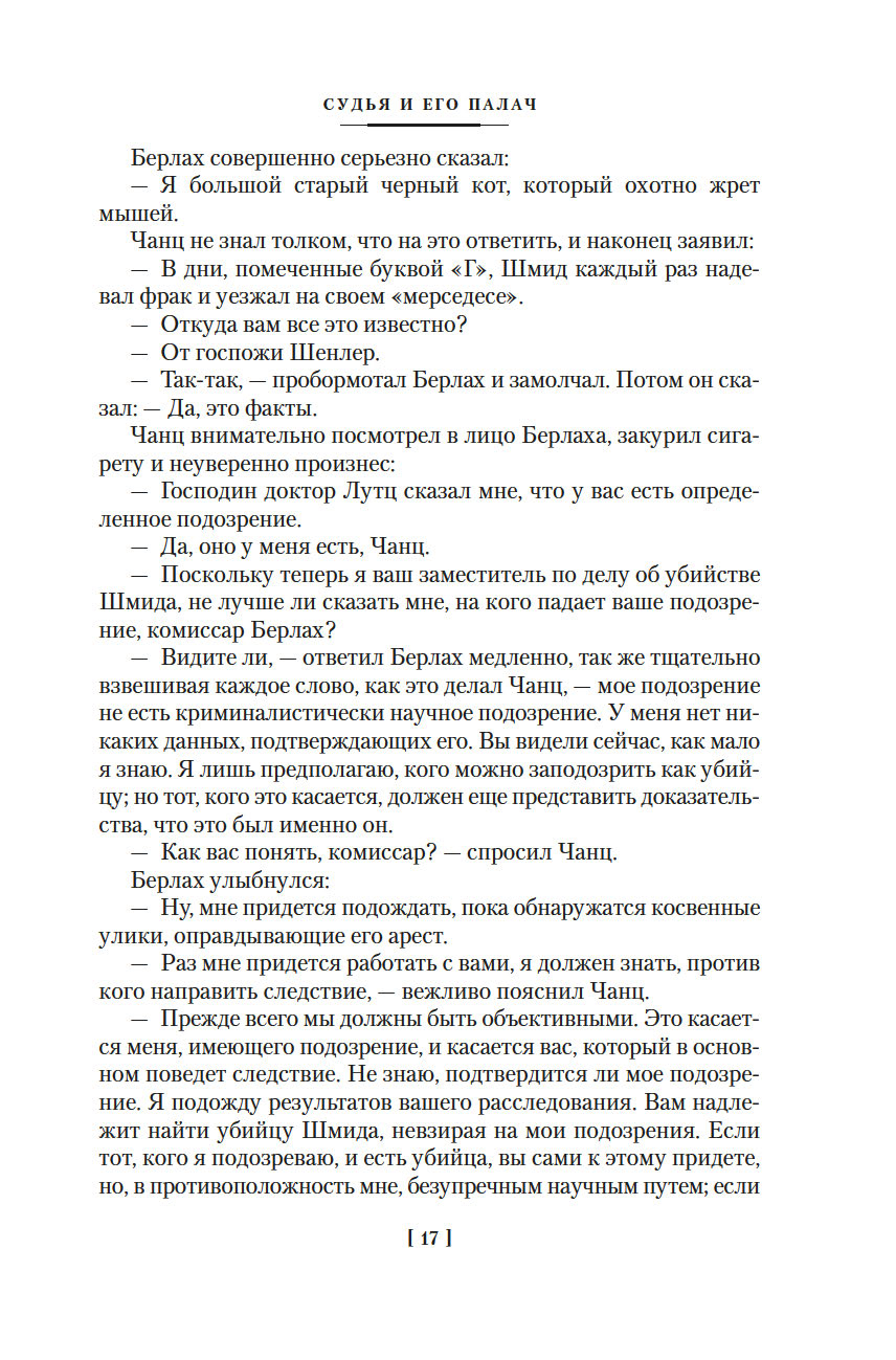 Фридриха Дюрренматта часто называли мастером невероятных сюжетов. Прославленный швейцарский писатель признавался, что писать детективы его заставляла нужда. Пожалуй, великолепный стилист и мастер интриги здесь несколько лукавил. Потому что именно этот жанр принес Дюрренматту широкое признание. Его романы и повести, такие как "Судья и его палач", "Обещание", "Подозрение" и другие, считаются эталоном детективного жанра. Искусно сотканная интрига, держащая в напряжении до последних страниц, стремительно развивающиеся события, эксцентричный главный герой, неожиданные повороты сюжета – все это характерные составляющие детективов Дюрренматта. Впрочем, следует уточнить, что его писательское дарование не было ограничено рамками одного жанра, и ряд произведений настоящего тома выходит далеко за пределы обыкновенных детективных историй...