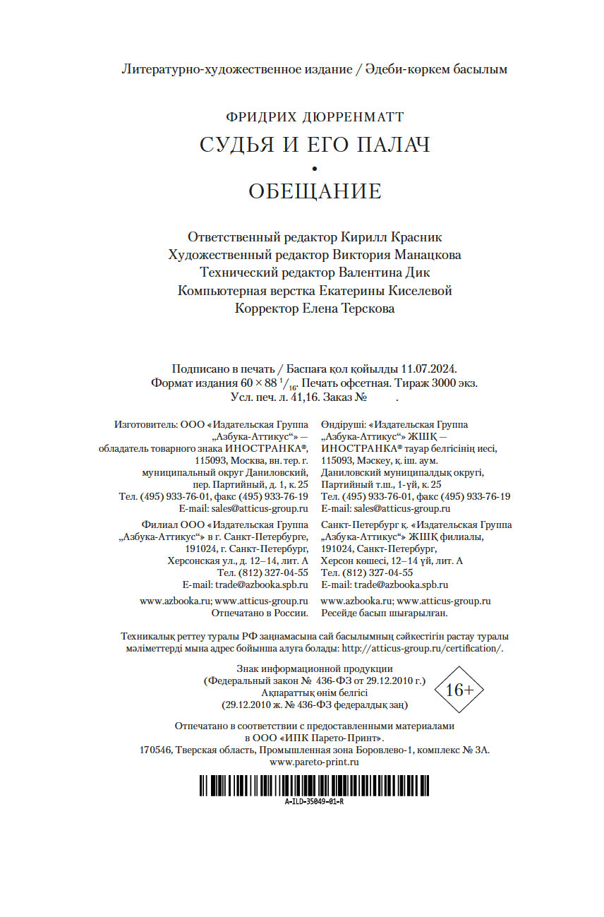 | Изготовитель | ООО "Издательство "Иностранка". 109017, РФ, г. Москва, ул. Пятницкая, 41 |