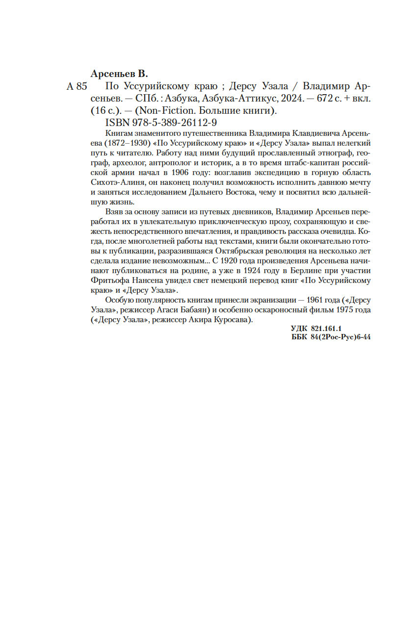 Книгам знаменитого путешественника Владимира Клавдиевича Арсеньева (1872-1930) "По Уссурийскому краю" и "Дерсу Узала" выпал нелегкий путь к читателю. Работу над ними будущий прославленный этнограф, географ, археолог, антрополог и историк, а в то время штабс-капитан российской армии начал в 1906 году: возглавив экспедицию в горную область Сихотэ-Алиня, он наконец получил возможность исполнить давнюю мечту и заняться исследованием Дальнего Востока, чему и посвятил всю дальнейшую жизнь.