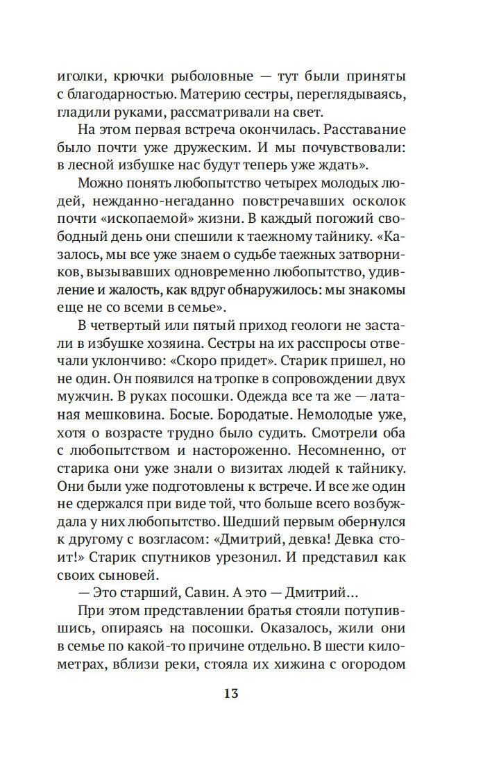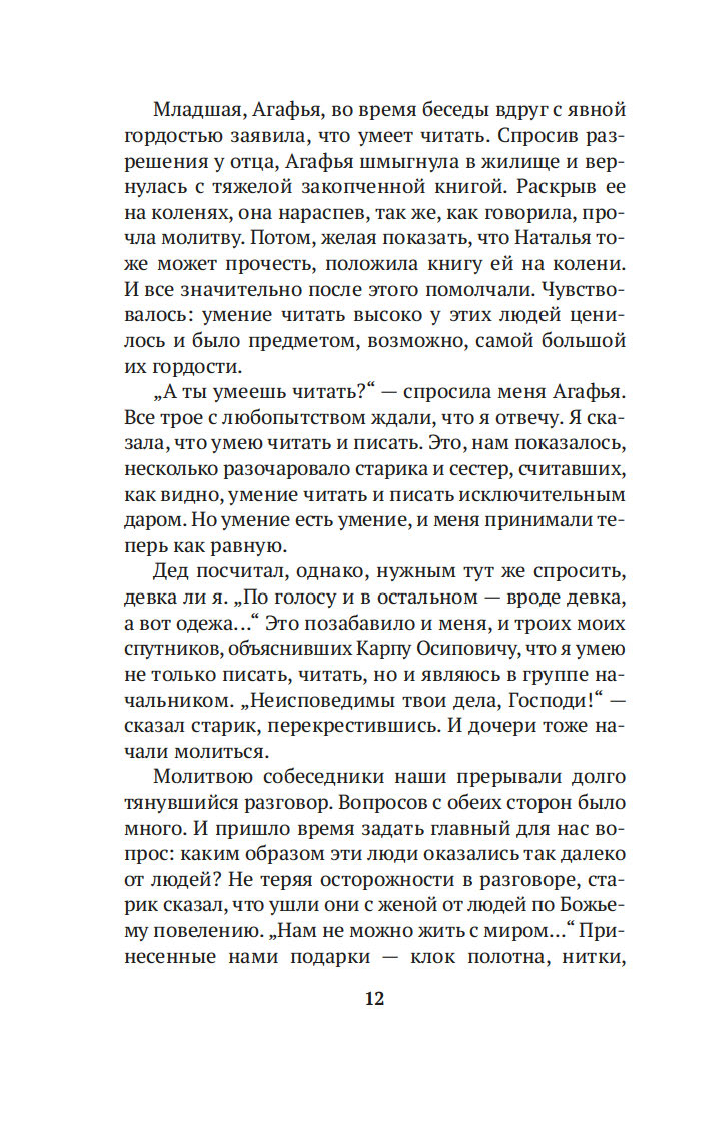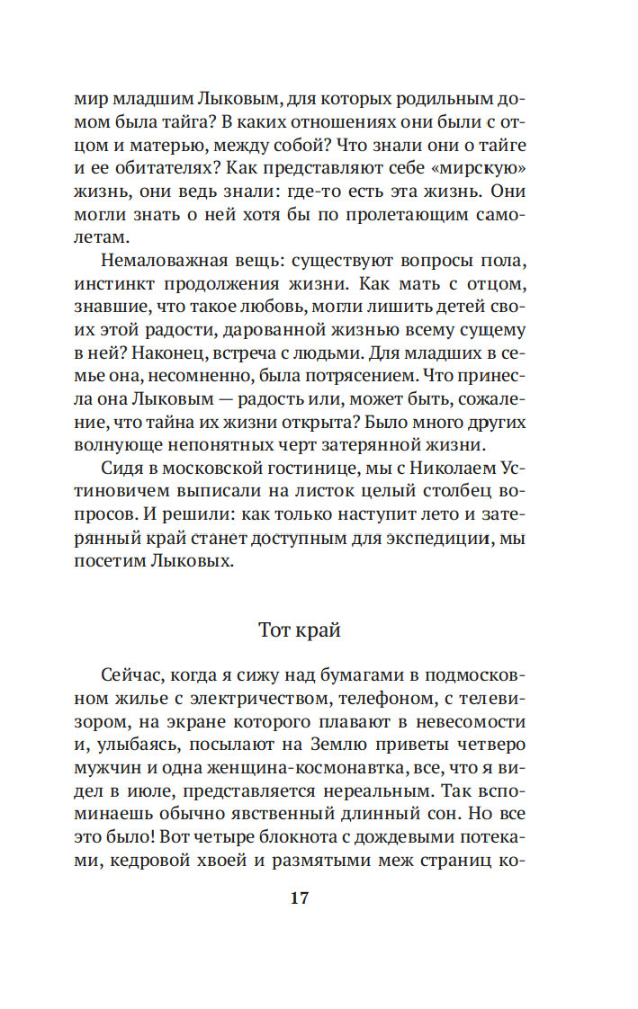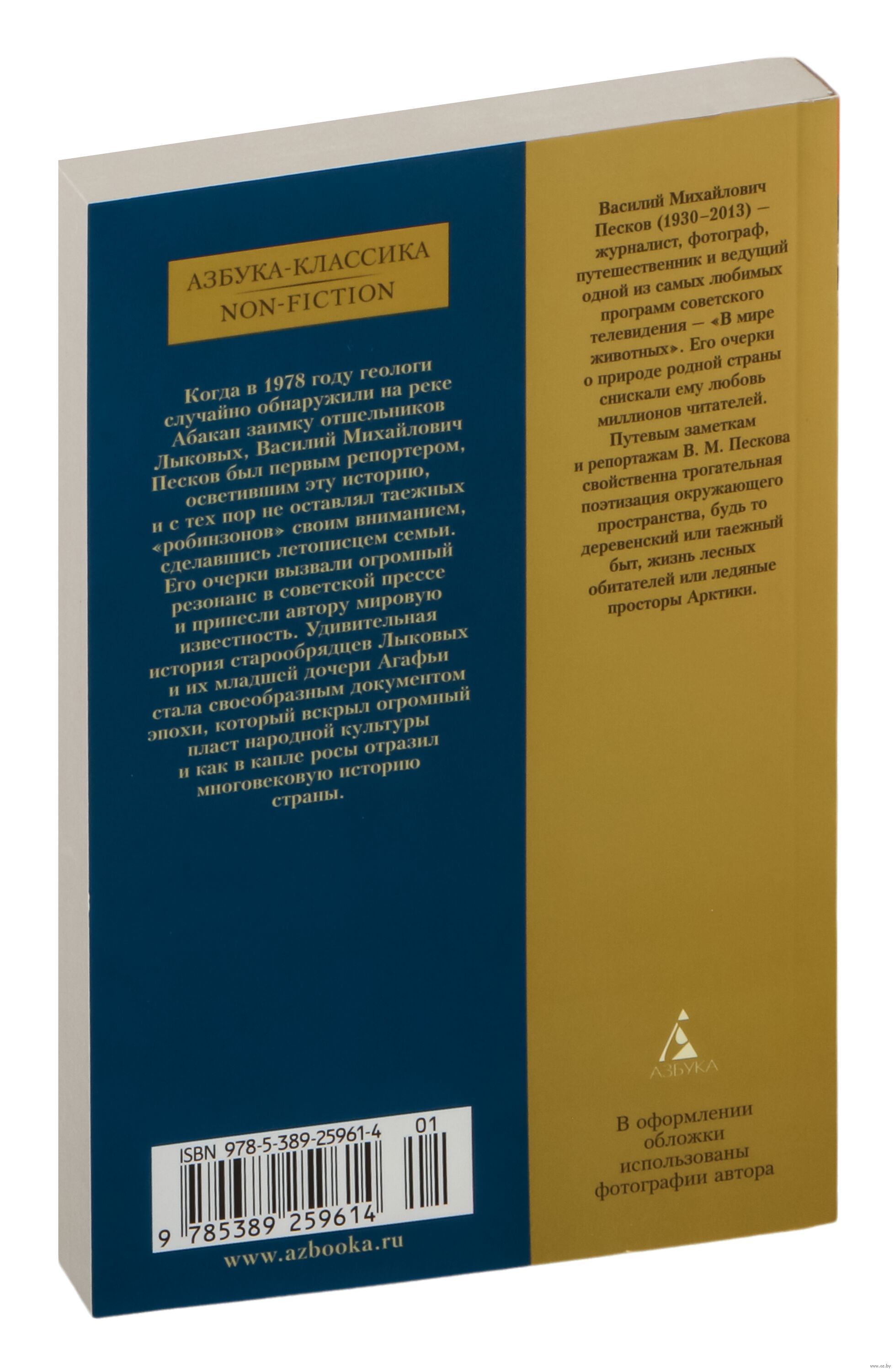 Когда в 1978 году геологи случайно обнаружили на реке Абакан заимку отшельников Лыковых, Василий Михайлович Песков был первым репортером, осветившим эту историю, и с тех пор не оставлял таежных "робинзонов" своим вниманием, сделавшись летописцем семьи. Его очерки вызвали огромный резонанс в советской прессе и принесли автору мировую известность. Удивительная история старообрядцев Лыковых и их младшей дочери Агафьи стала своеобразным документом эпохи, который вскрыл огромный пласт народной истории страны.