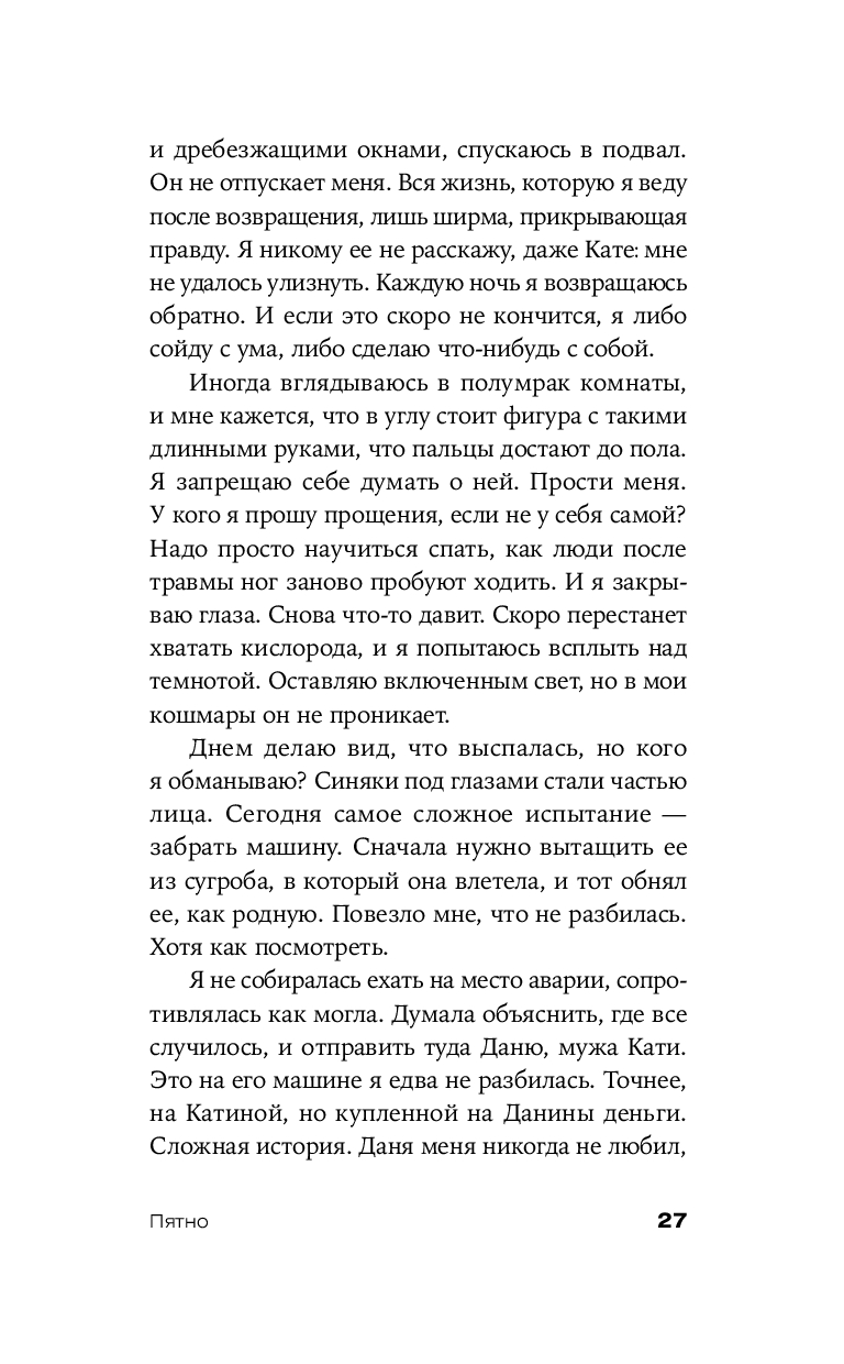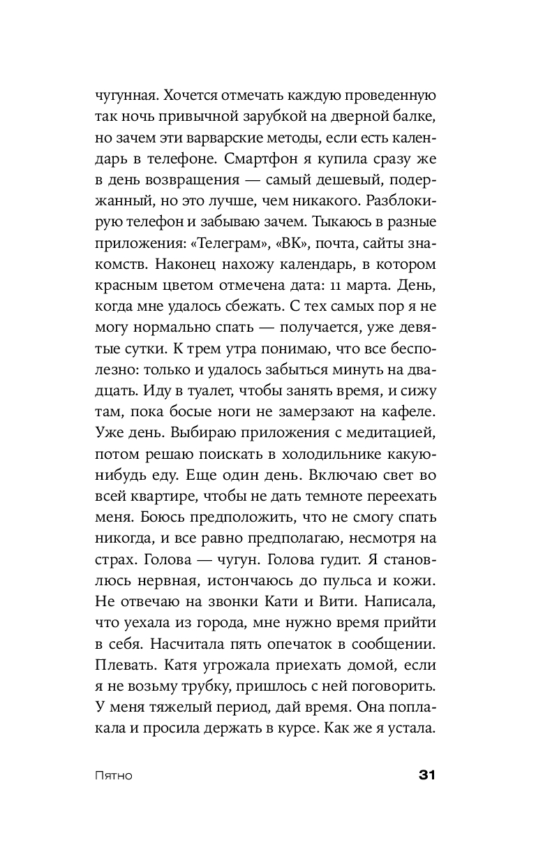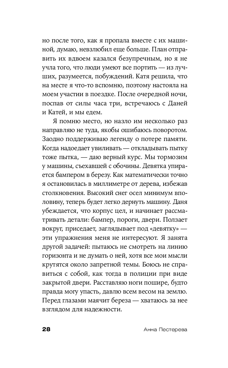Настя живет в небольшом российском городе и мечтает найти удаленную высокооплачиваемую работу. У нее есть бывший муж, с которым удалось сохранить нормальные отношения, и подруга, которая в нее верит. Не так мало для нормальной жизни, но однажды зимним днем девушка пропадает на три с половиной недели, а вернувшись, никому не рассказывает, что именно с ней приключилось. Несмотря на то что она предпочла бы вычеркнуть этот период из своей жизни, забыть о нем не удастся. Более того, чтобы по‑настоящему отпустить эту историю, ей предстоит добровольно туда вернуться.