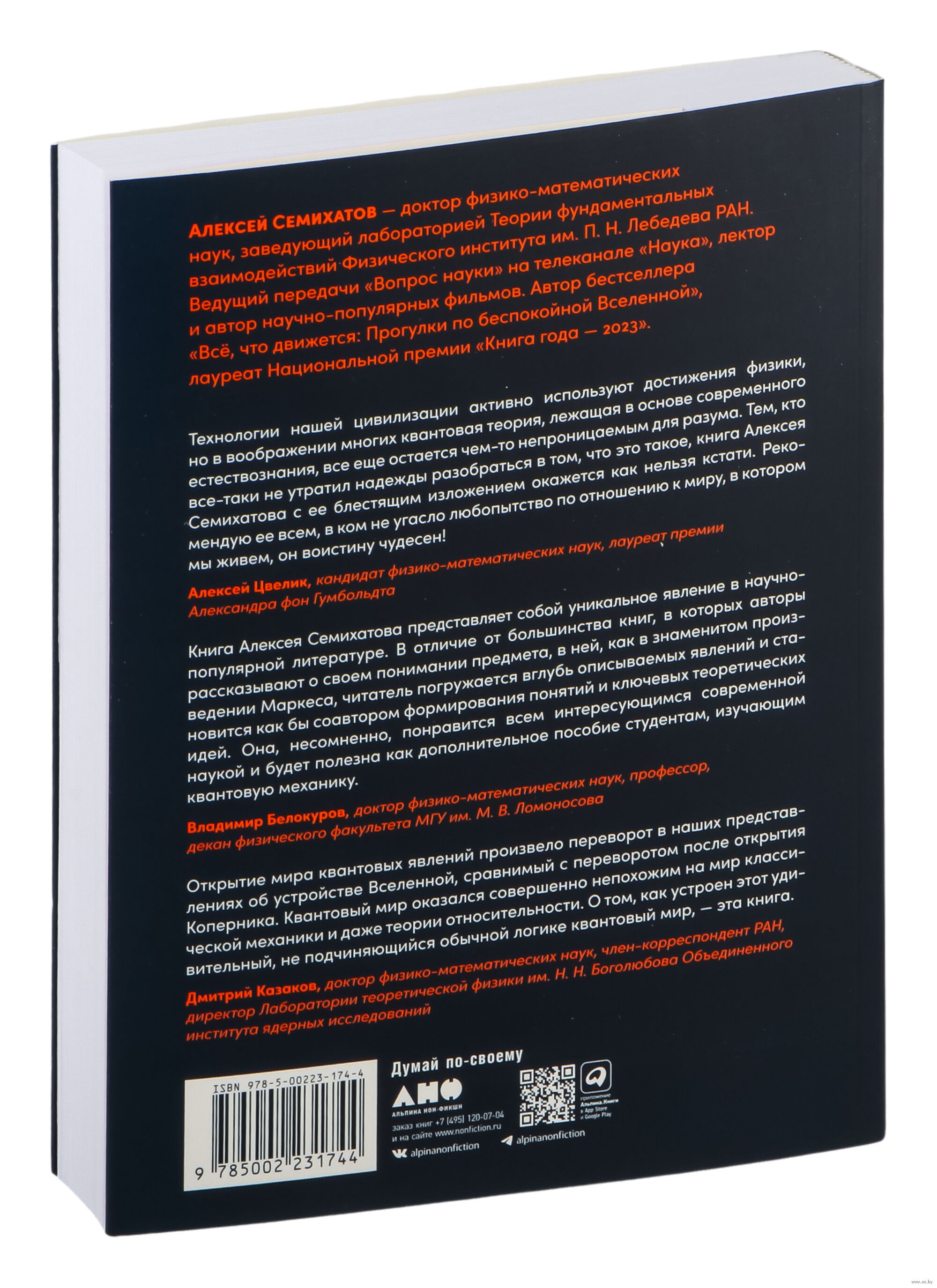 На заре второго квантового столетия физик Алексей Семихатов предлагает последовательное изложение современного состояния квантовой механики. Каковы принципиальные особенности квантового мира и какой ценой их можно примирить с интуицией? По каким правилам развиваются квантовые системы во времени и как в это развитие вмешиваются вероятности? Как различные интерпретации квантовой механики подталкивают нас к глубоко философским заключениям о возможном устройстве реальности – от параллельных вселенных до разрывов в восприятии? И как привычная нам реальность возникает из чуждой ей квантовой? Оказывается, о квантовой механике можно всерьез говорить понятным языком, а обсуждение ее сложных мест делает этот разговор только интереснее.