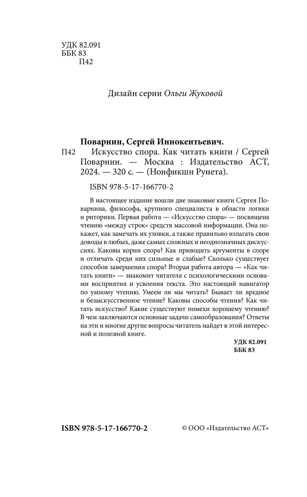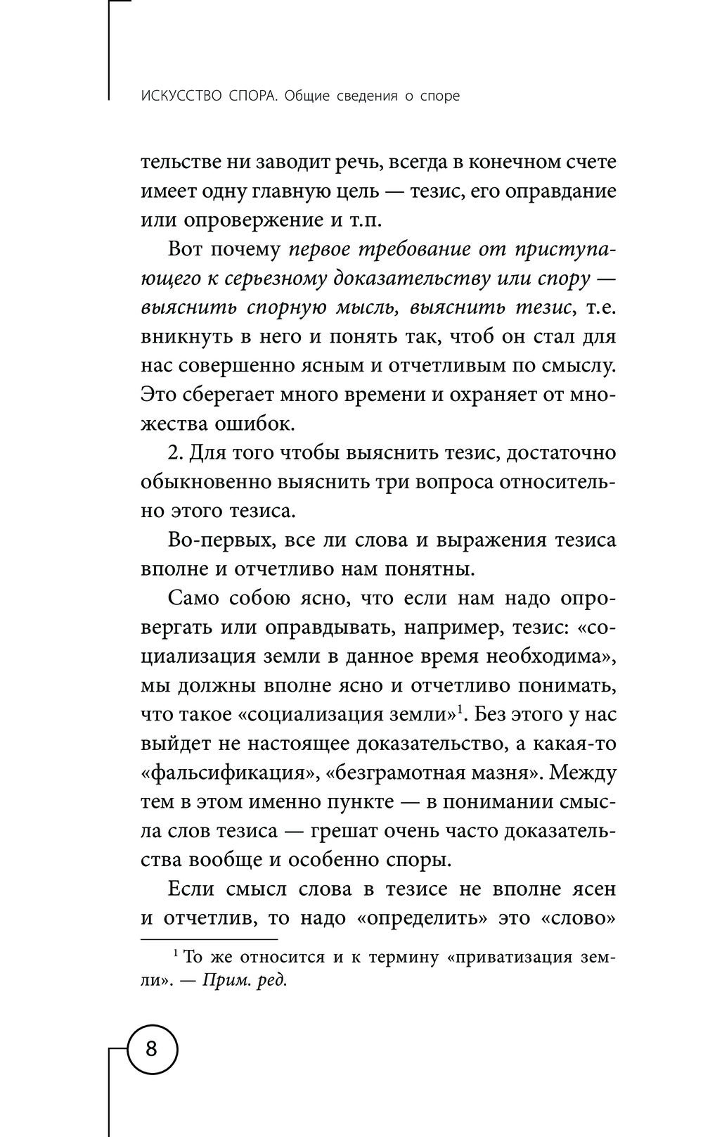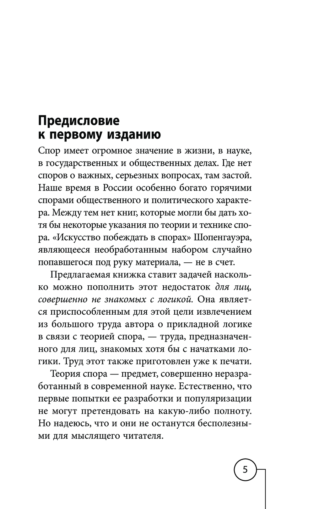 Первая работа – "Искусство спора" – посвящена чтению "между строк" средств массовой информации. Она покажет, как замечать их уловки, а также правильно излагать свои доводы в любых, даже самых сложных и неоднозначных дискуссиях.