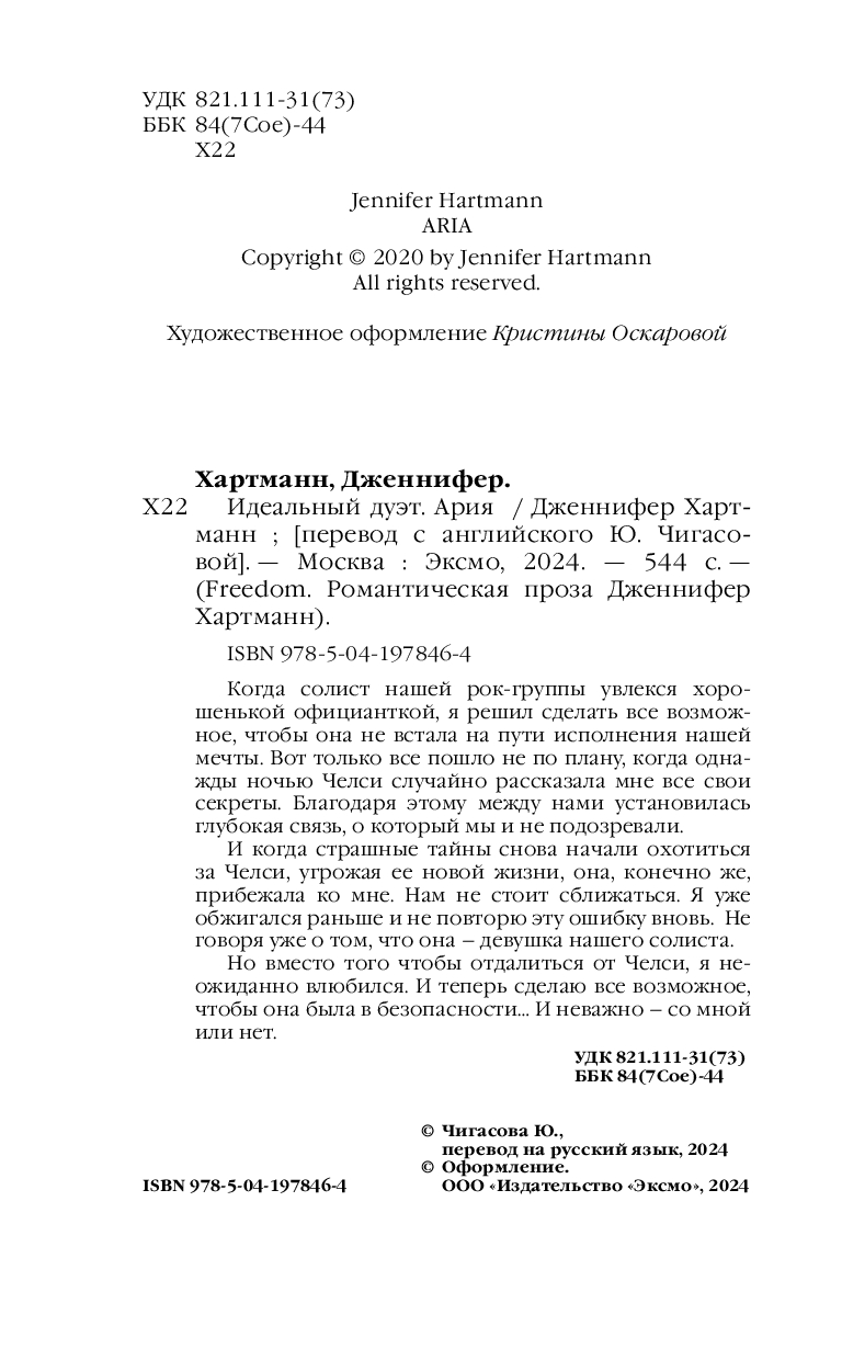 | Название в оригинале | Aria by Jennifer Hartmann |