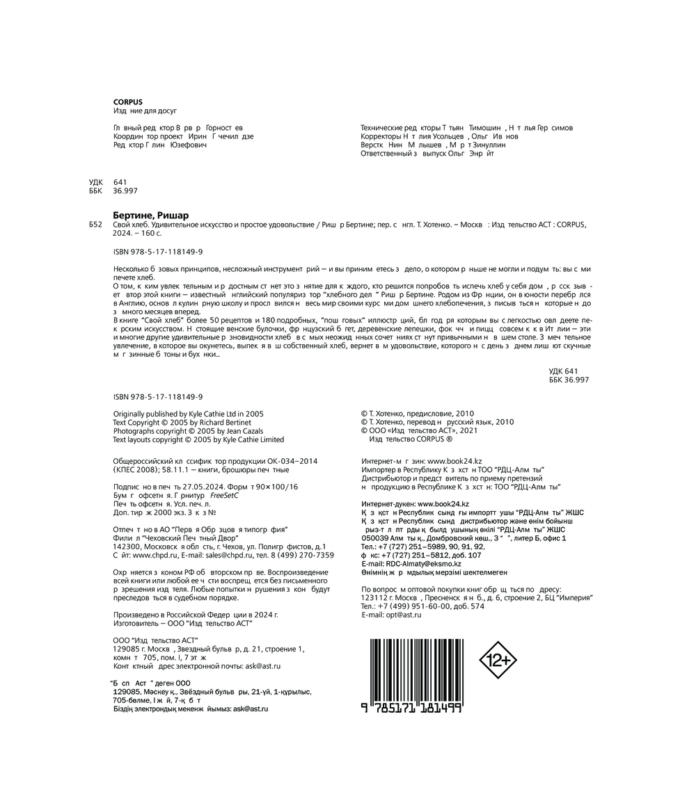 О том, каким увлекательным и радостным станет это занятие для каждого, кто решится попробовать испечь хлеб у себя дома, рассказывает автор этой книги – известный английский популяризатор "хлебного дела" Ришар Бертине. Родом из Франции, он в юности перебрался в Англию, основал кулинарную школу и прославился на весь мир своими курсами домашнего хлебопечения, записываться на которые надо за много месяцев вперед.