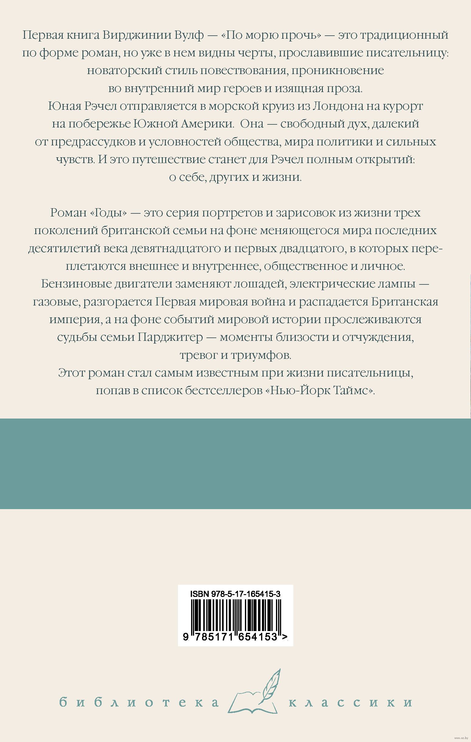 Роман "Годы" – это серия портретов и зарисовок из жизни трех поколений британской семьи на фоне меняющегося мира последних десятилетий века девятнадцатого и первых двадцатого, в которых переплетаются внешнее и внутреннее, общественное и личное. Бензиновые двигатели заменяют лошадей, электрические лампы – газовые, разгорается Первая мировая война и распадается Британская империя, а на фоне событий мировой истории прослеживаются судьбы семьи Парджитер – моменты близости и отчуждения, тревог и триумфов. Этот роман стал самым известным при жизни писательницы, попав в список бестселлеров "Нью-Йорк Таймс".