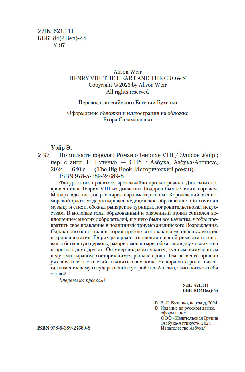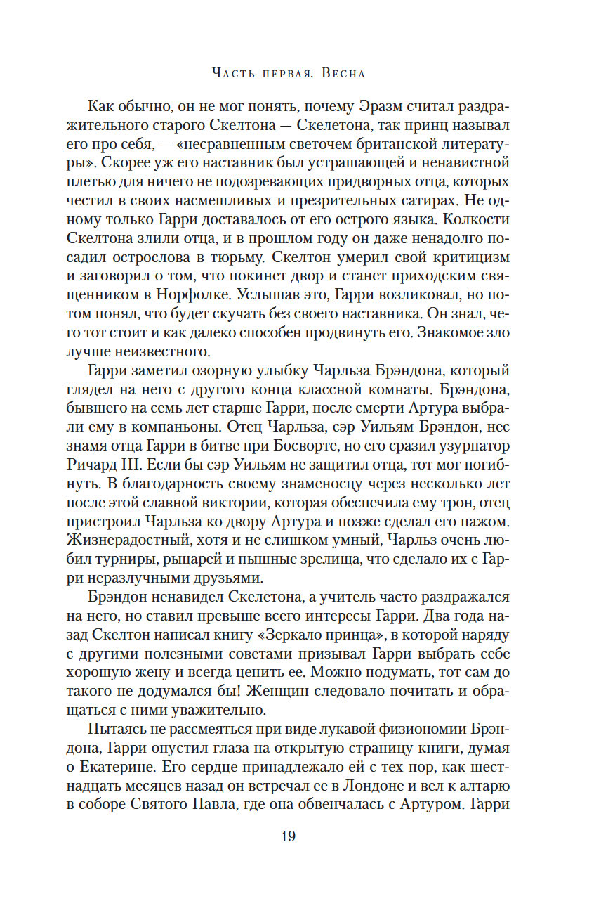 Фигура этого правителя чрезвычайно противоречива. Для своих современников Генрих VIII из династии Тюдоров был великим королем. Монарх-идеалист, он расширил парламент, основал Королевский военно-морской флот, модернизировал медицинское образование. Он сочинял музыку и стихи, обожал рыцарские турниры, покровительствовал искусствам. В молодые годы образованный и одаренный принц считался воплощением многих добродетелей, и у него были все качества, чтобы превратить свое правление в подлинный триумф английского Возрождения. Однако оно осталось в истории прежде всего как время опасных интриг и кровопролития. Генрих разорвал отношения с папой римским и основал собственную церковь, разорил монастыри, обезглавил двух своих жен и прогнал двух других. Он умер подозрительным, тучным, измученным недугами тираном, состарившимся раньше срока. Тем не менее прошло уже почти пять столетий, а память о нем жива. Не пора ли королю, навсегда изменившему государственное устройство Англии, замолвить за себя слово?
