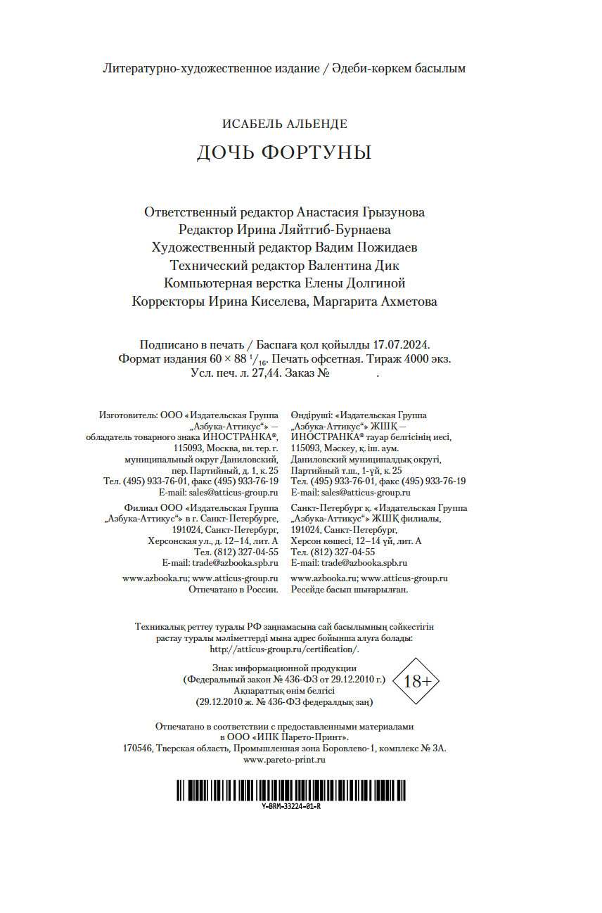 | Изготовитель | ООО "Издательство "Иностранка". 109017, РФ, г. Москва, ул. Пятницкая, 41 |