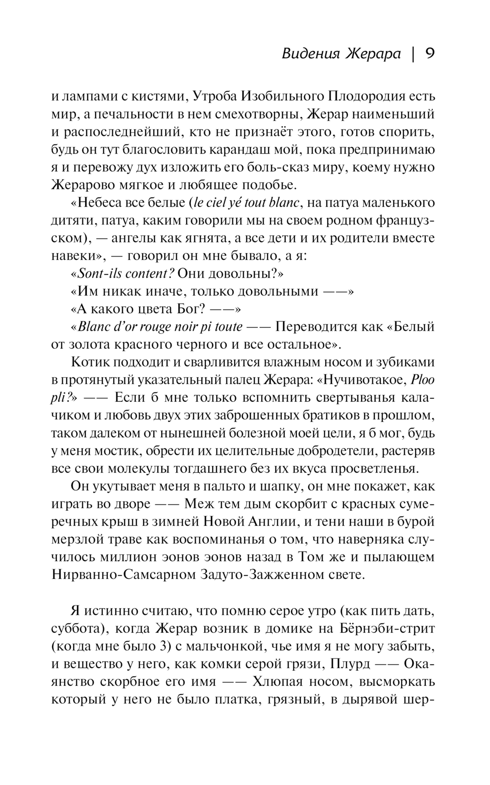 "Моя самая серьезная, печальная и правдивая книга", – так отзывался Керуак о "Видениях Жерара", своем первом романе из автобиографического цикла "Легенды Дулуоза", романе, написанном в память о горячо любимом старшем брате, который прожил очень короткую, но счастливую жизнь, оставив неизгладимый след в сердце маленького Джека.