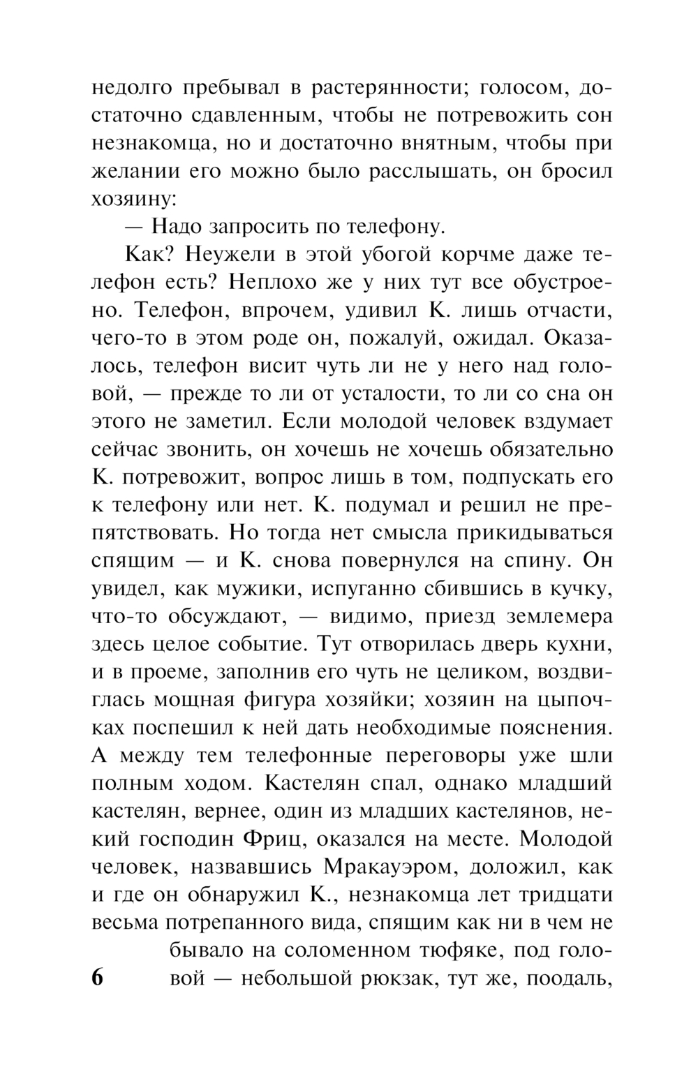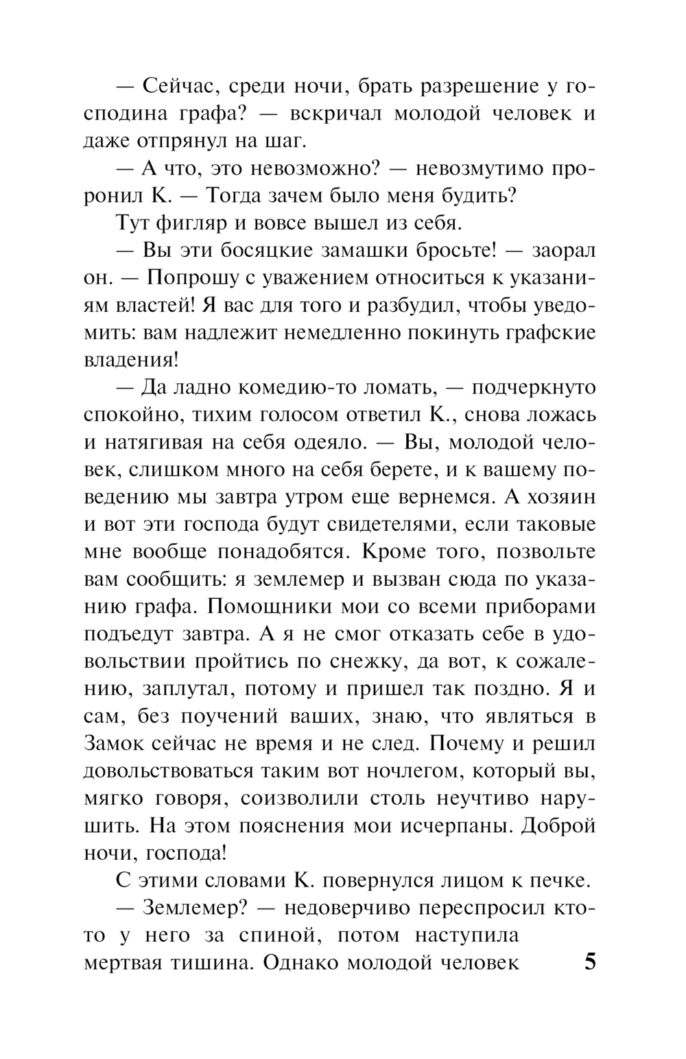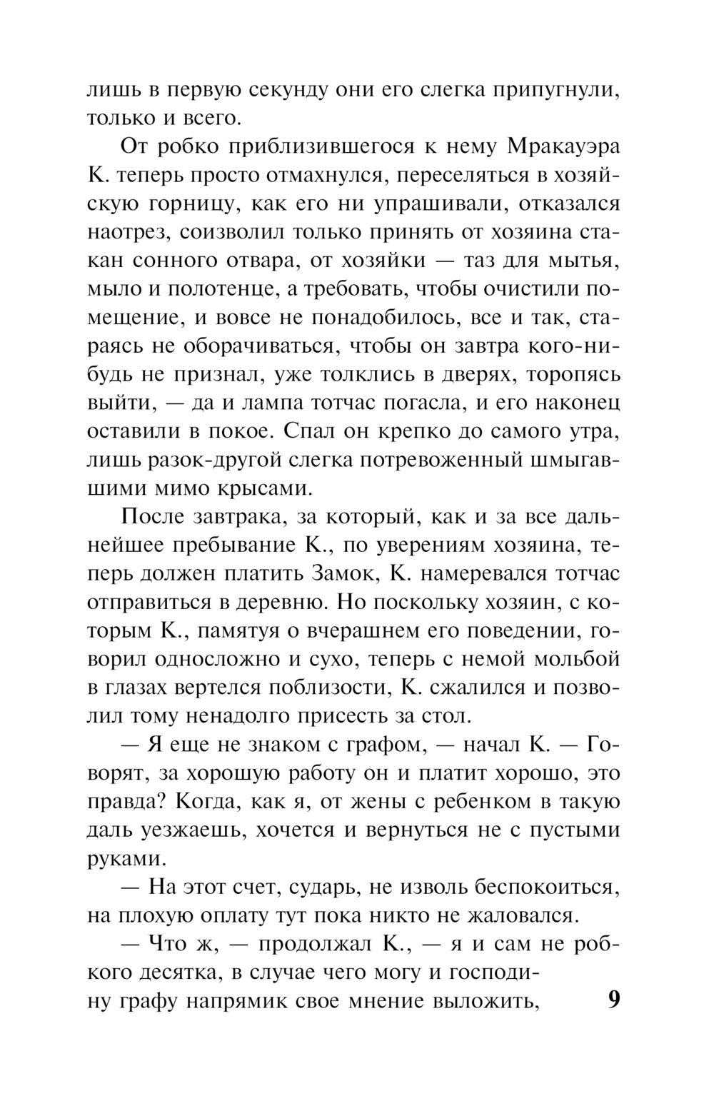 Он не был закончен писателем и впервые опубликован после его смерти в 1926 году его другом Максом Бродом. Сюжет "Замка" абсурден, но в то же время правдоподобен: в некую Деревню приезжает землемер К. и пытается попасть в Замок, куда его не пускают. Сложная система бюрократии запутывается в клубок, распутать который нет никакой возможности, а значит, нет возможности попасть в Замок, какими бы окольными путями ты ни шел. Но сатира на бюрократическую систему – лишь один из подтекстов романа.