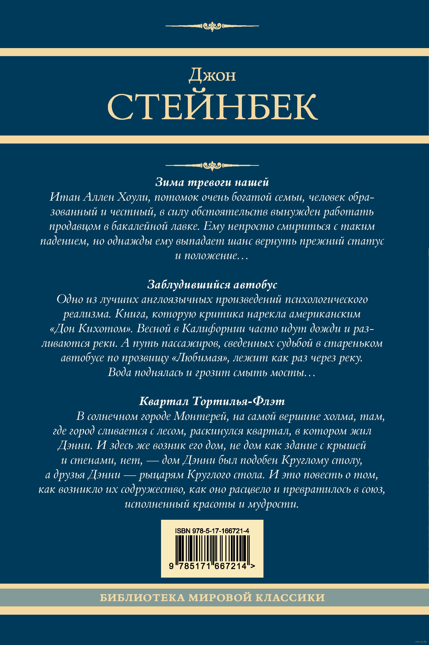 В сборник включены романы, представляющие разные периоды творчества писателя: "Зима тревоги нашей", "Заблудившийся автобус" и "Квартал Тортилья-Флэт".