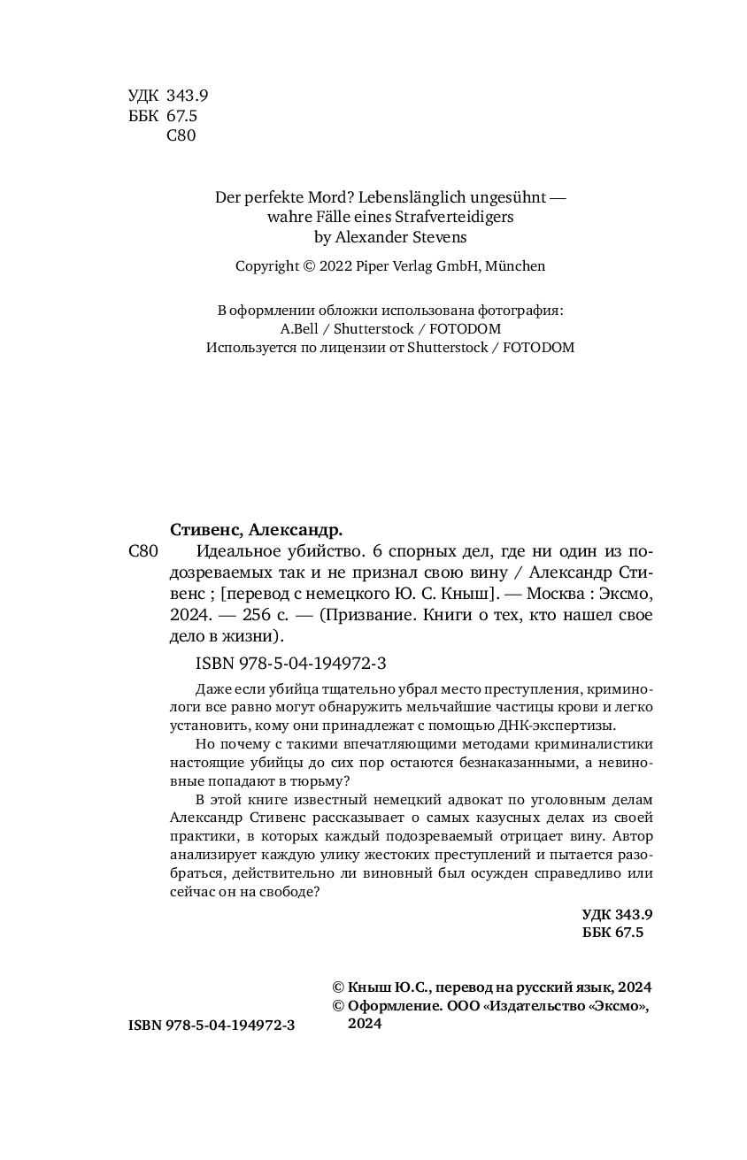 | Название в оригинале | Der perfekte Mord? Lebenslänglich ungesühnt – wahre Fälle eines Strafverteidigers by Alexander Stevens |