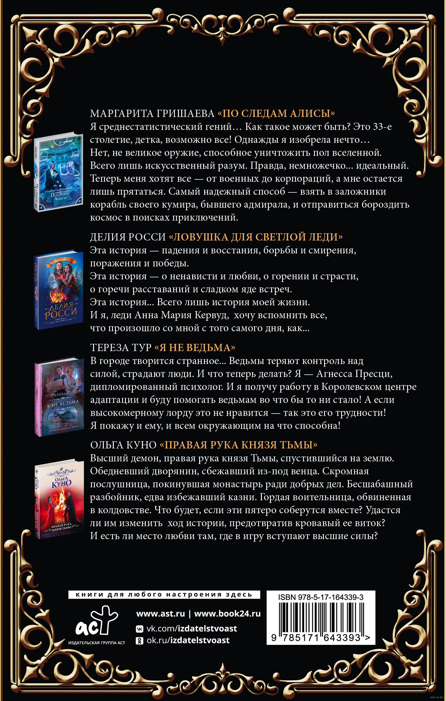 Высший демон, правая рука князя Тьмы, спустившийся на землю. Обедневший дворянин, сбежавший из-под венца. Скромная послушница, покинувшая монастырь ради добрых дел. Бесшабашный разбойник, едва избежавший казни. Гордая воительница, обвиненная в колдовстве. Что будет, если эти пятеро соберутся вместе? Удастся ли им изменить ход истории, предотвратив кровавый ее виток? И есть ли место любви там, где в игру вступают высшие силы?"