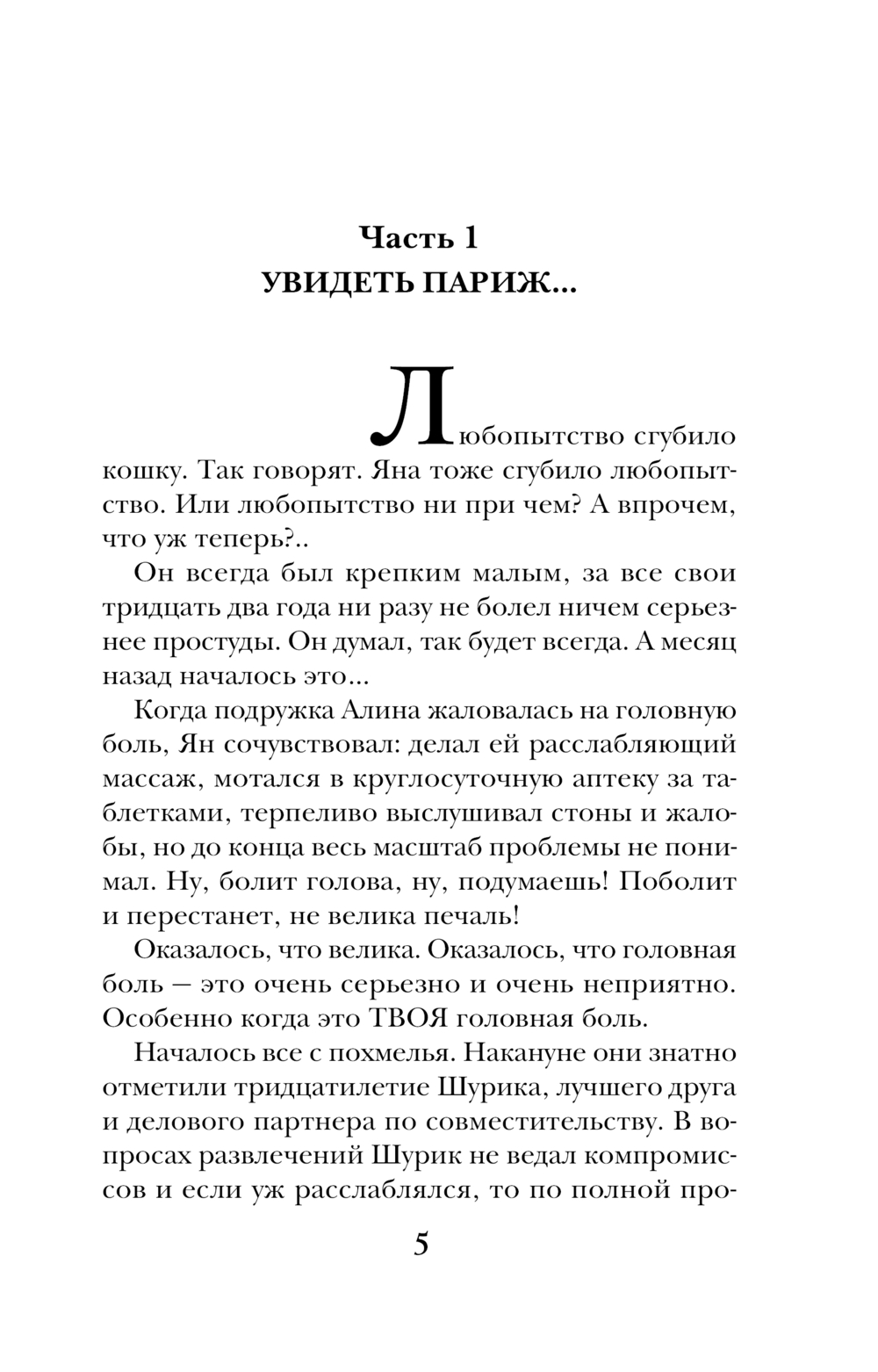 Когда Ян из подслушанного разговора врачей узнал, будто жить ему осталось всего ничего, молодой человек понял – надо перестать мечтать о Париже, а немедленно туда ехать! Решено – сделано, тем более и попутчица нашлась – девушка Тина, любительница готических нарядов, похожая на диковинную черную птицу.