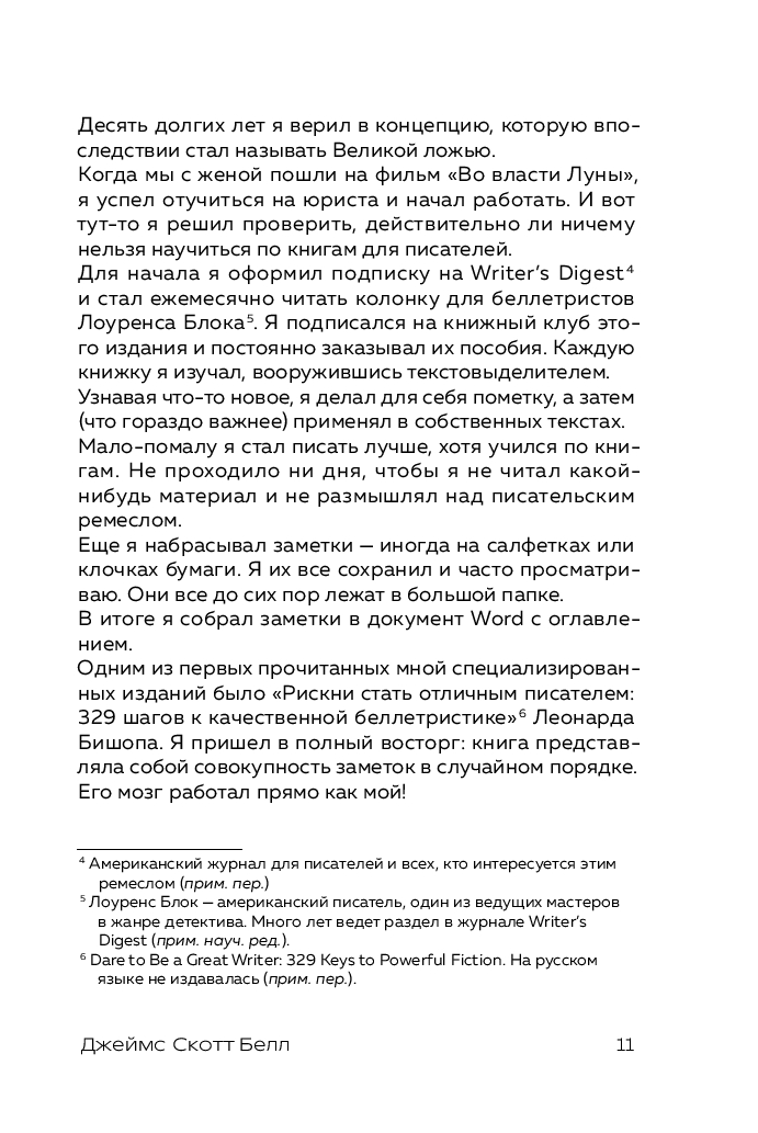 Джеймс Скотт Белл – лауреат Международной премии писателей и автор многих бестселлеров в жанре триллера, а также преподаватель писательского мастерства. В своей книге автор подробно раскрывает, как прокачать свой писательский навык, раскрыть талант с помощью разных писательских техник.