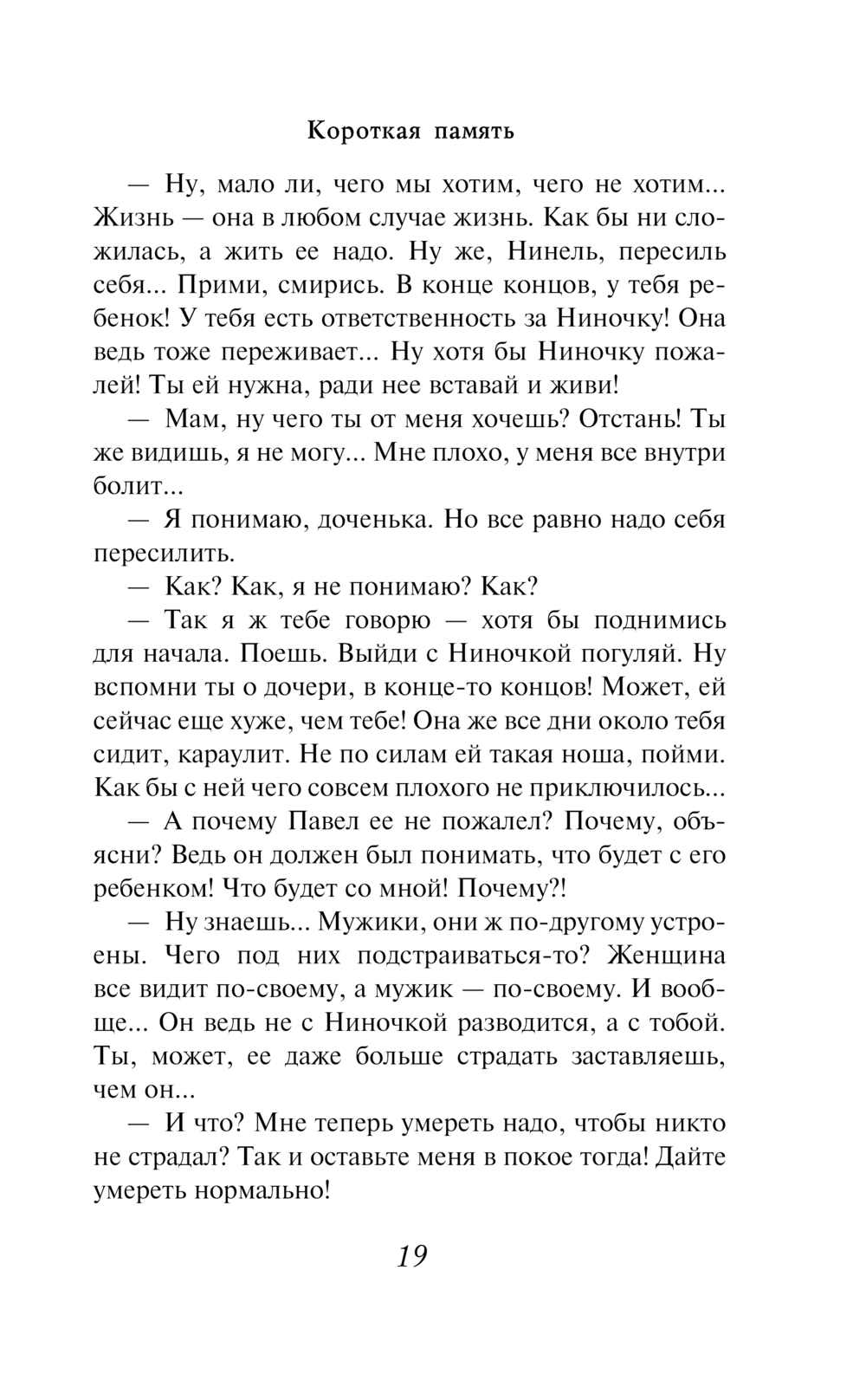 Долгое время Павел жил в собственной семье словно в заложниках. Его жена Нинель – красивая, но избалованная, инфантильная женщина. Они сошлись против его воли: мать Павла надавила на него, когда узнала, что Нинель ждет ребенка. Дочурка Ниночка стала единственным лучиком света в этом непроглядном тёмном царстве.