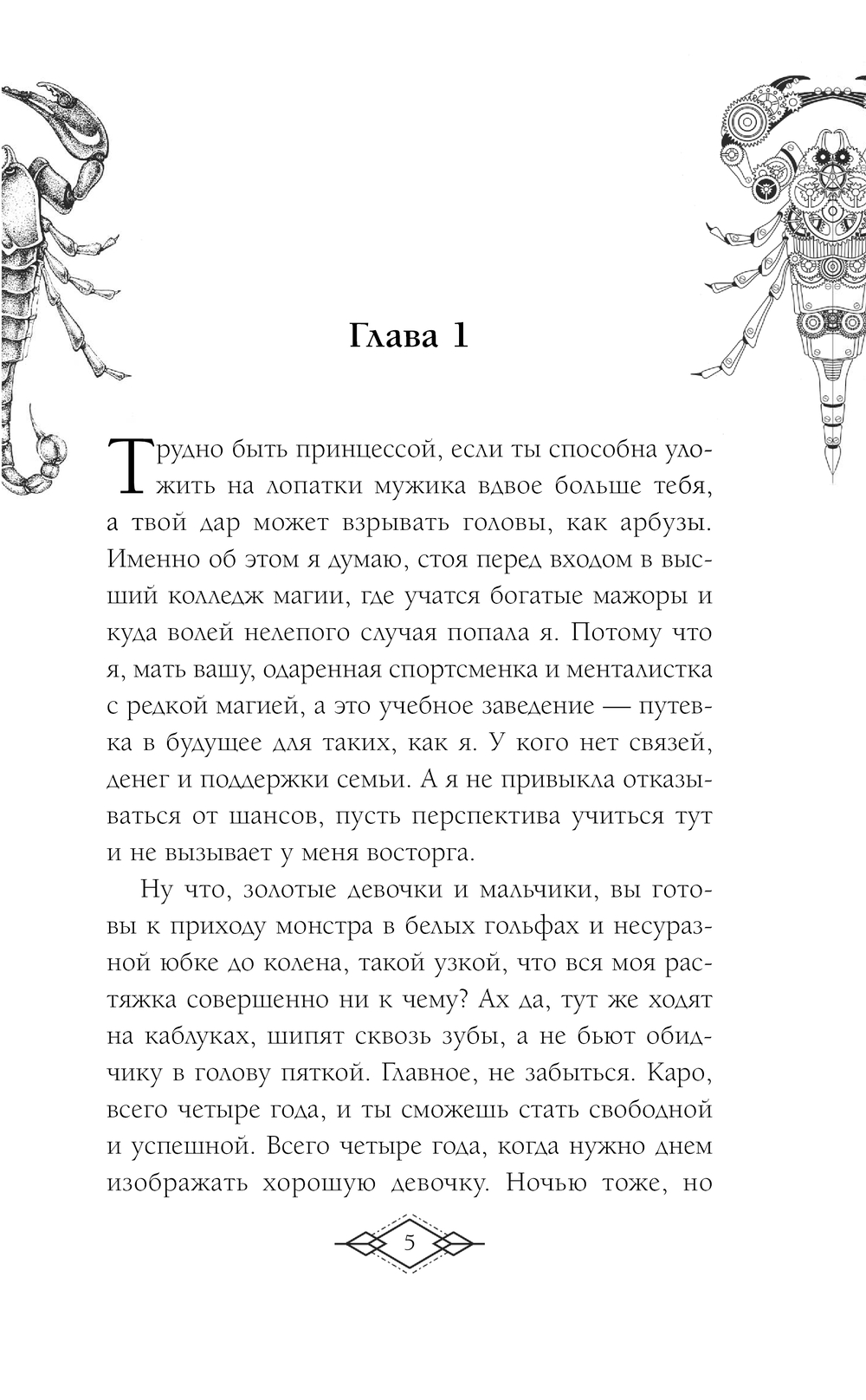 Трудно быть принцессой, если ты способна уложить на лопатки мужчину вдвое больше тебя. Магический колледж Горскейра – это путевка в будущее, и Каро готова на многое, чтобы использовать этот шанс. Вот только за ней по пятам идет ее темное прошлое, и бороться за место под солнцем придется не только с мажорами, но и со своими демонами.