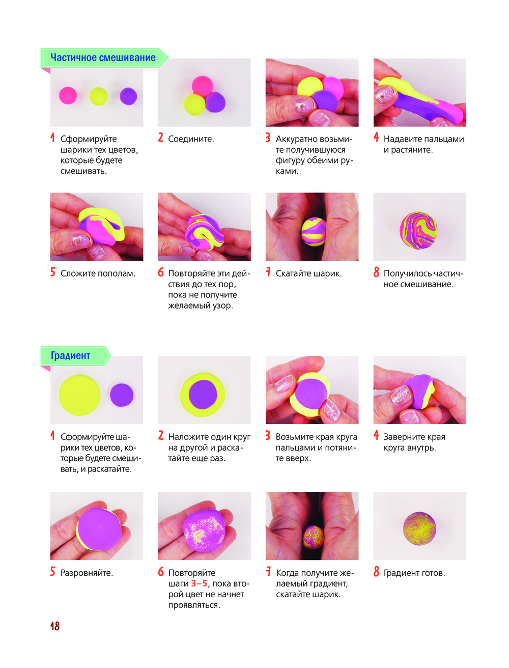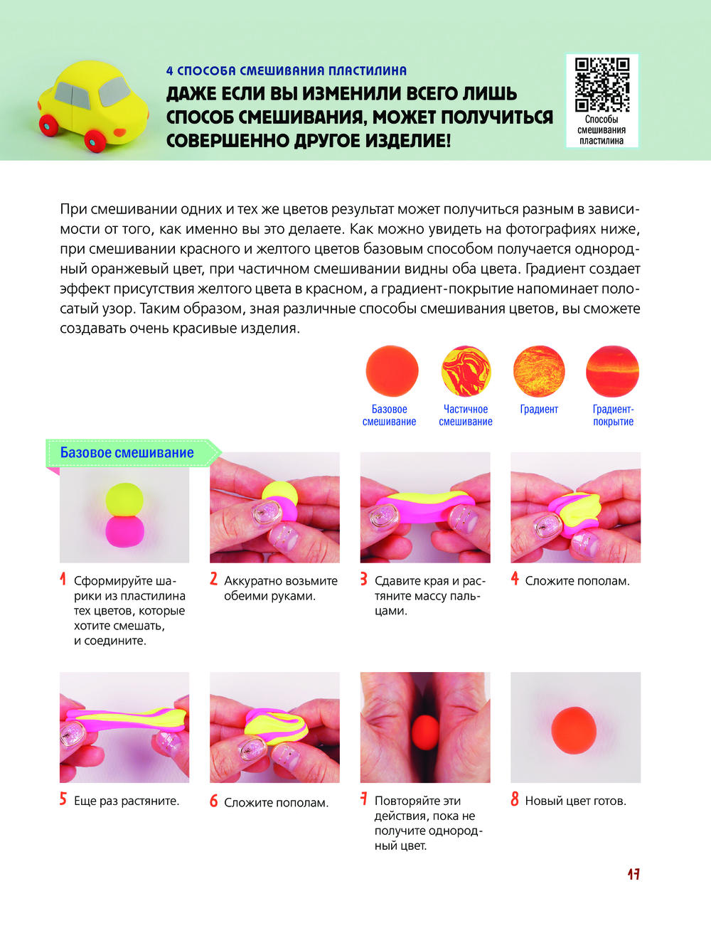 Начиная с азов, шаг за шагом малыш будет осваивать создание основных форм – шариков, жгутов, капель... Все основы, способы лепки, искусство смешивания цветов с фотографиями и даже видео! В книге есть как простые работы, которые можно сделать всего за несколько минут, так и сложные, для выполнения которых требуется концентрация и гораздо больше времени. Выбирать работу по силам очень удобно – их фотографии и указание уровня сложности есть в оглавлении, не надо листать всю книгу!