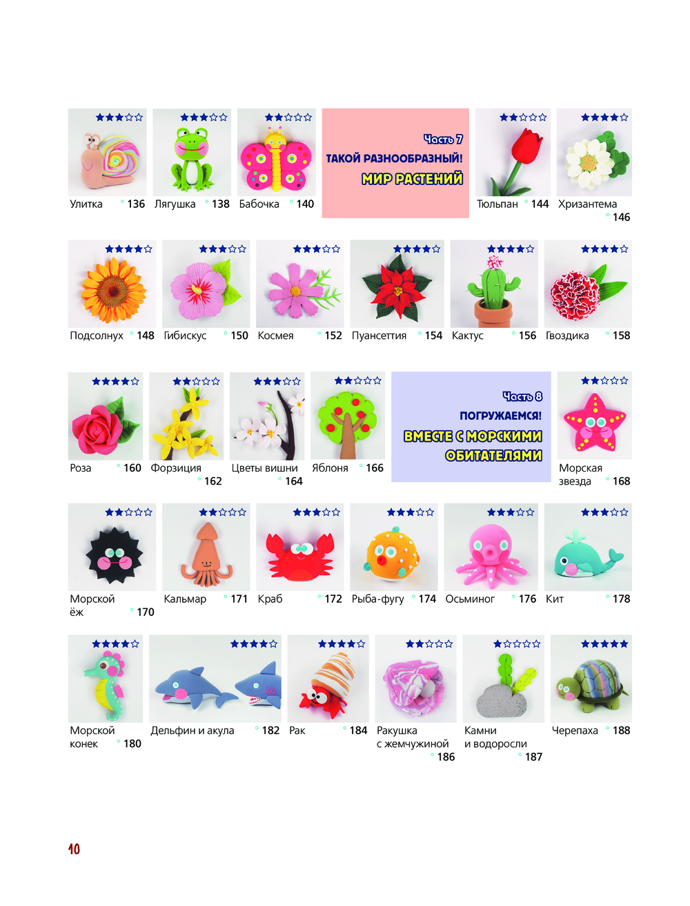 Эта книга научит лепить целых 157 красивых проектов с указанием уровня сложности: