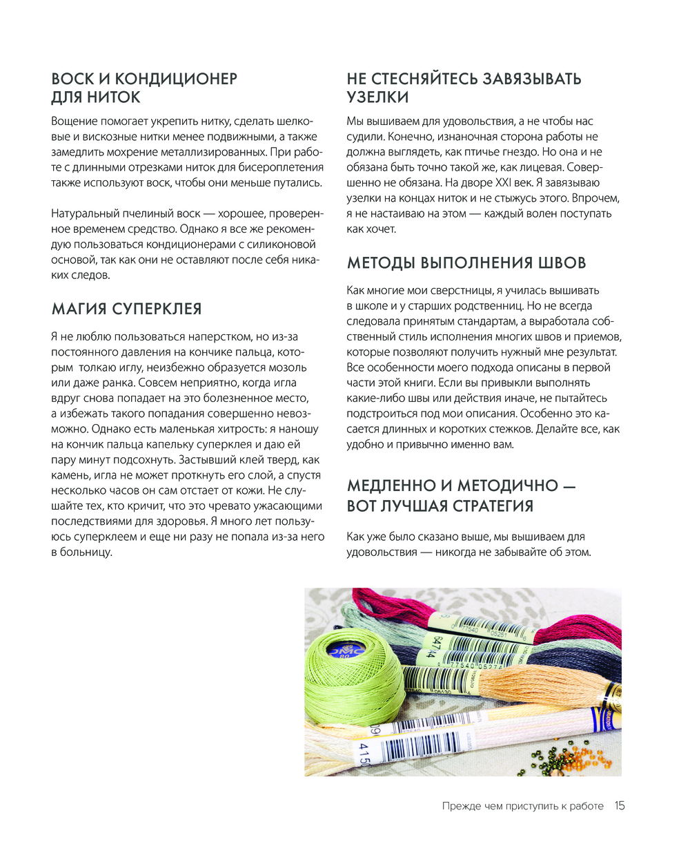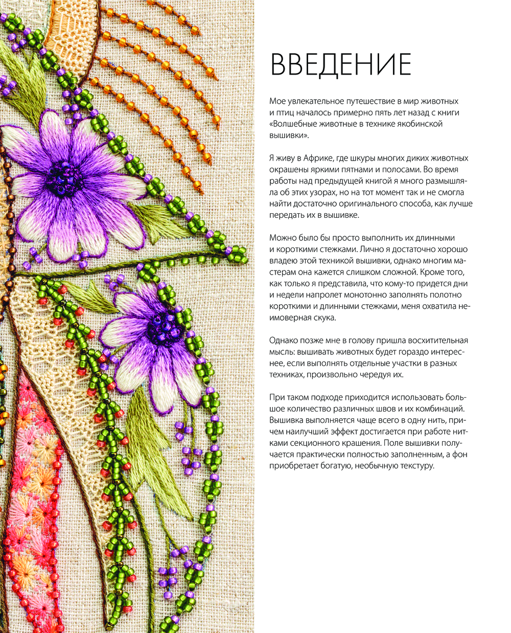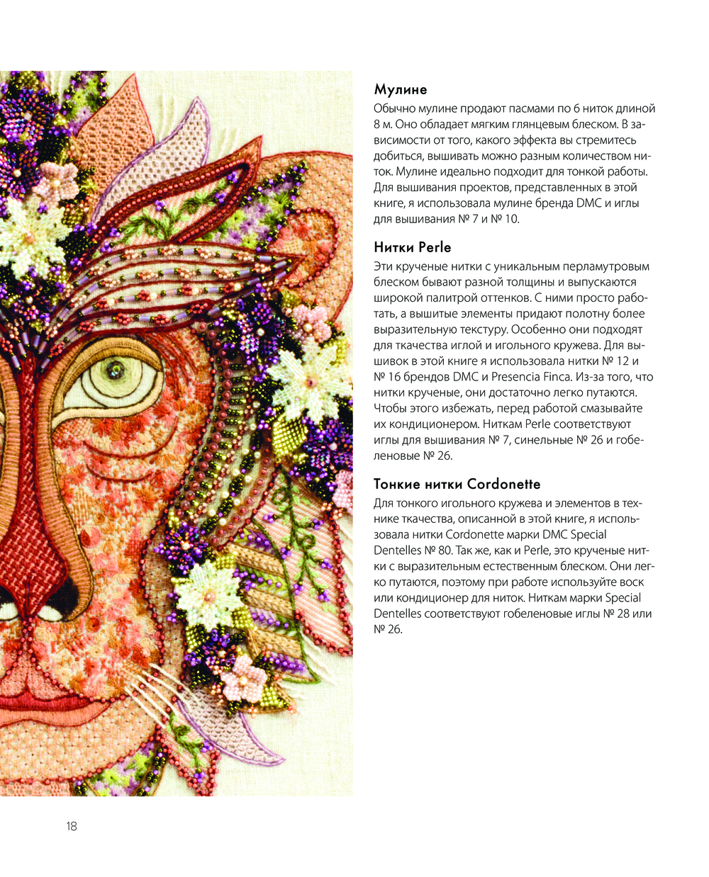 Вас ждут детальные инструкции по выполнению каждого шва, используемого в проектах и подробный гид по инструментам и материалам. Наглядные иллюстрированные мастер-классы и понятные схемы к каждому дизайну помогут не запутаться в процессе вышивания. А в качестве приятного бонуса вы узнаете все секреты и приемы авторской техники вышивальщицы мирового уровня.