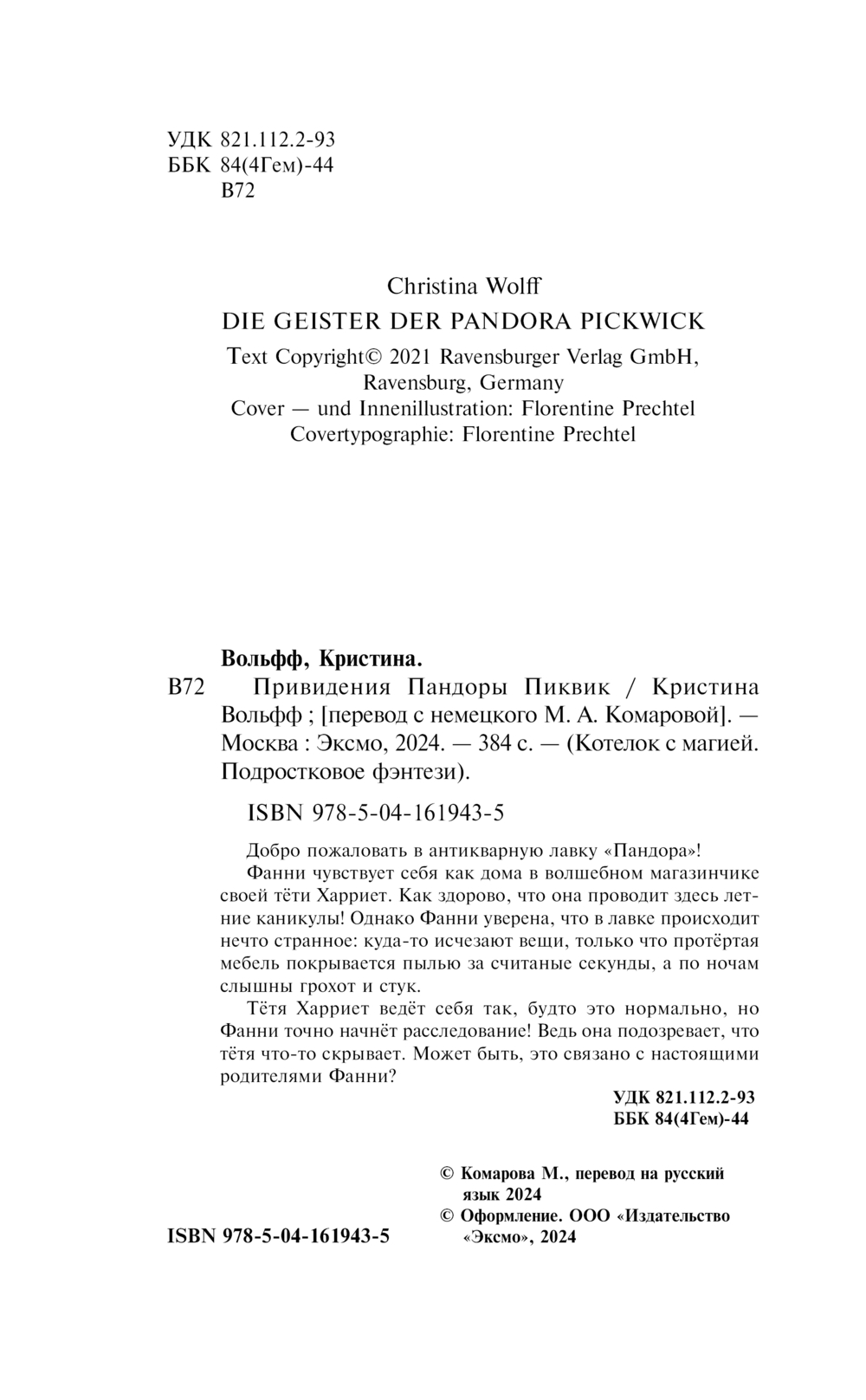 | Название в оригинале | Die Geister der Pandora Pickwick by Christina Wolff |