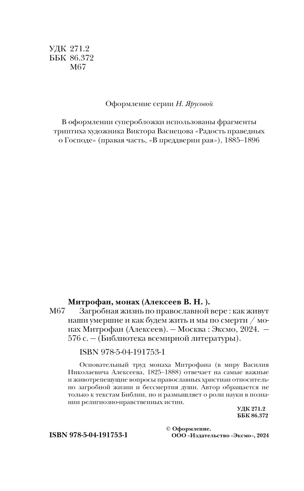 Основательный труд монаха Митрофана (в миру Василия Николаевича Алексеева, 1825-1888) отвечает на самые важные и животрепещущие вопросы православных христиан относительно загробной жизни и бессмертия души. Автор обращается не только к текстам Библии, но и размышляет о роли науки в познании религиозно-нравственных истин.
