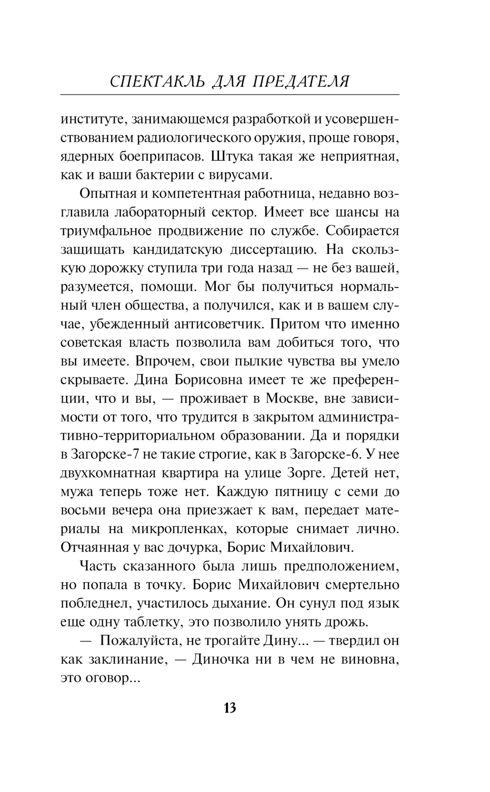 В квартире его ждали двое в штатском. Без долгих разговоров они предъявили известному профессору-вирусологу обвинение в сотрудничестве с иностранной разведкой, привели неоспоримые доказательства. Профессор и его дочь Дина долгие годы передавали секретные сведения западным спецслужбам. На высшую меру хватает... Впрочем, у Комитета есть предложение. Много лет назад за границу сбежал академик Лучинский, хорошо знавший семью профессора. По сведениям, именно он курирует сейчас разработку "грязной" атомной бомбы. Нужно выманить изменника на родину, чтобы предать суду. Для этого Дина и майор КГБ Андрей Зимин под видом молодоженов должны отправиться за границу и убедительно разыграть там настоящую драму...