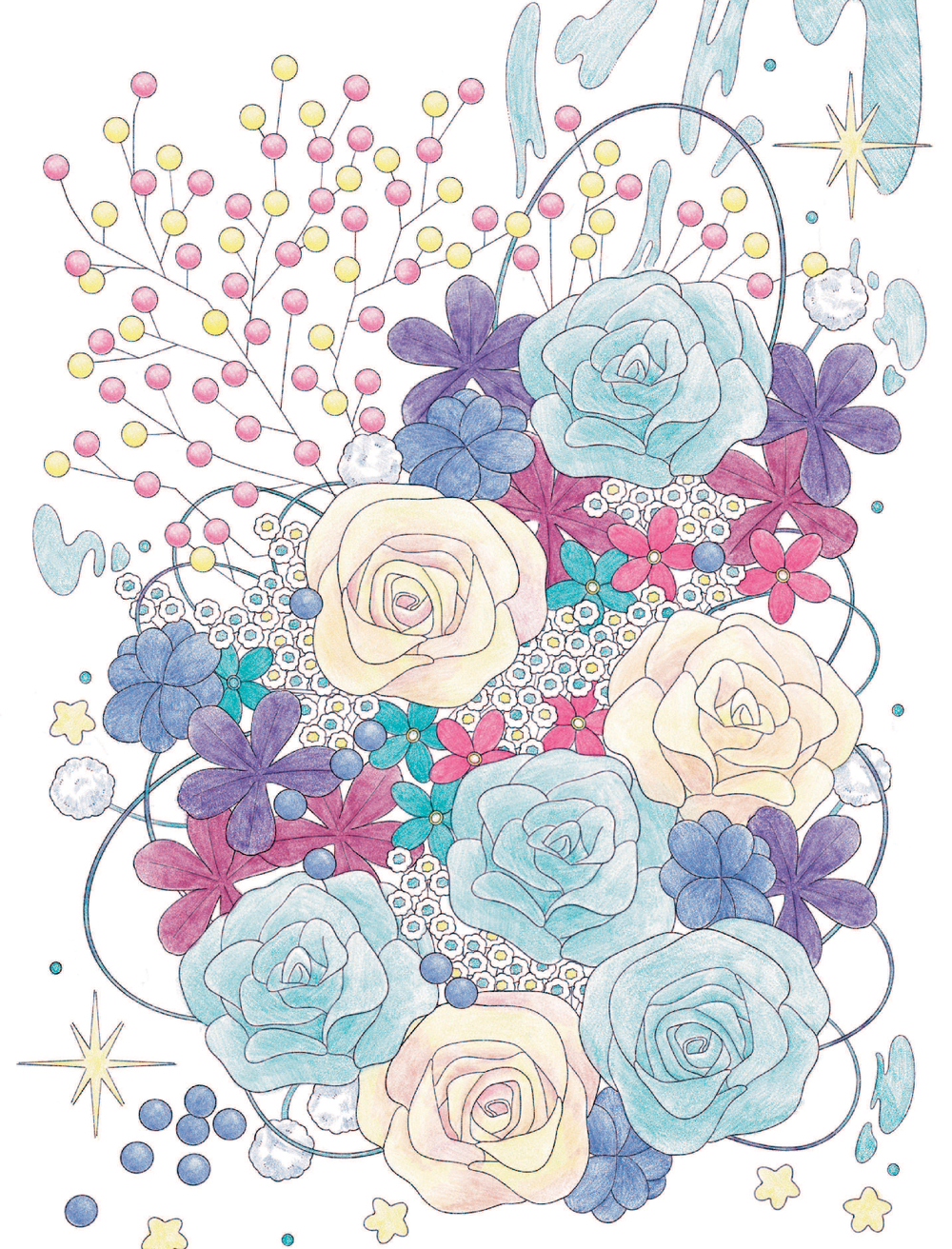 Плотная бумага, одна иллюстрация на разворот, что позволит раскрашивать любыми художественными материалами: от акварельных карандашей до маркеров.