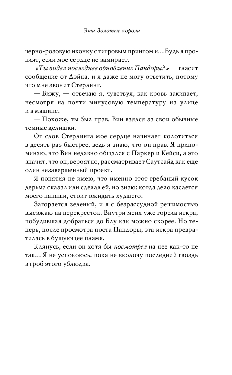 В полном темных тайн коррумпированном городе определить, кто на твоей стороне, становится все сложнее с каждым днем. Особенно сейчас, когда отец Уэста Вин вышел на тропу войны, разбрасываясь ужасными угрозами. Его власть в Сайпресс-Пойнт кажется безграничной, и у меня нет времени проверять, так ли это на самом деле. Чтобы защитить семью, я готова принести в жертву даже собственное счастье. Но Вин не учел одного: кровь не всегда гуще воды. Ему придется узнать, что переходить мне дорогу – не самая разумная затея. Ведь король Сайпресс-Препп пойдет на все ради своей королевы.