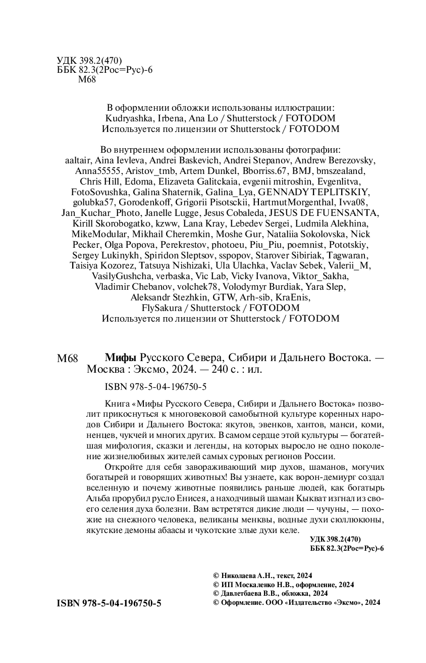 Книга "Мифы Русского Севера, Сибири и Дальнего Востока" позволит прикоснуться к многовековой самобытной культуре коренных народов Сибири и Дальнего Востока: якутов, эвенков, хантов, манси, коми, ненцев, чукчей и многих других. В самом сердце этой культуры – богатейшая мифология, сказки и легенды, на которых выросло не одно поколение жизнелюбивых жителей самых суровых регионов России.