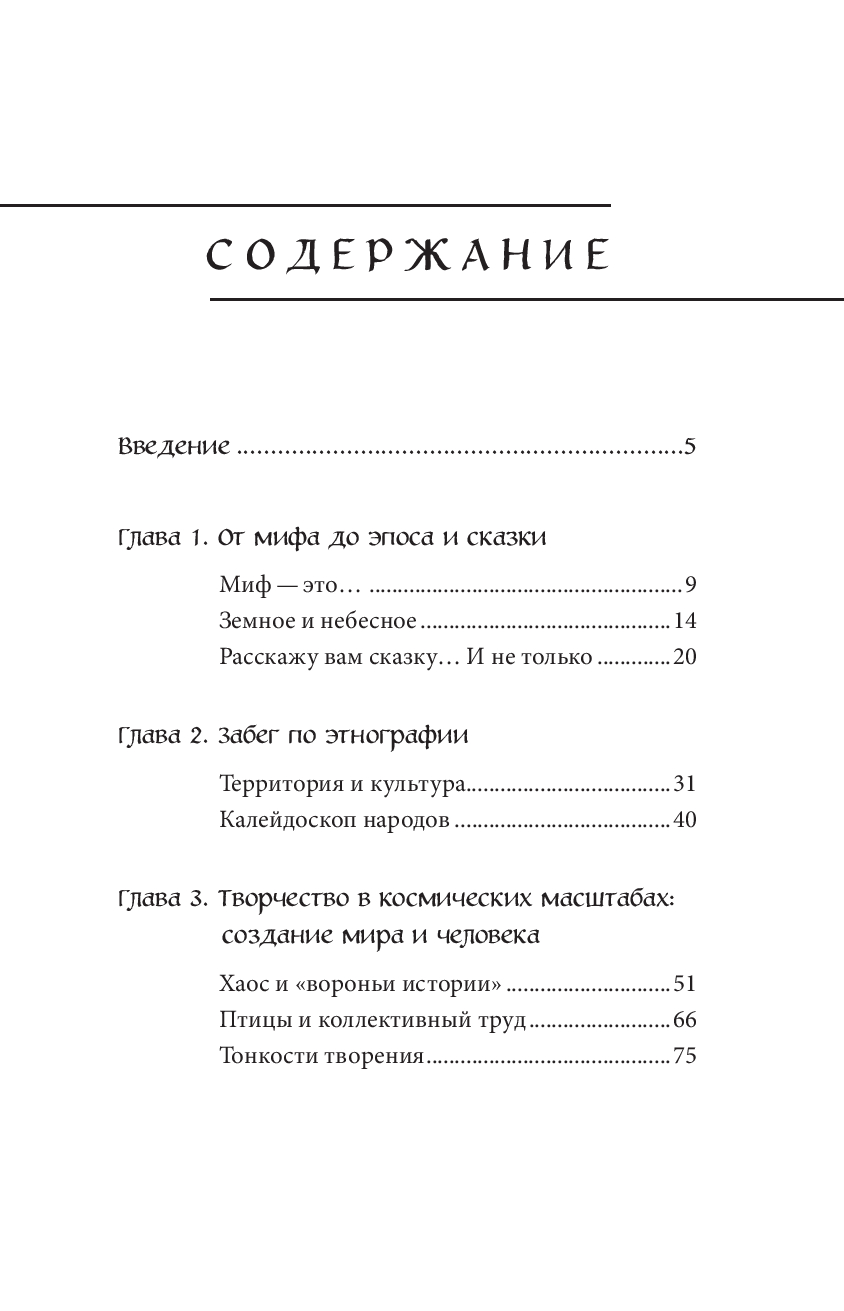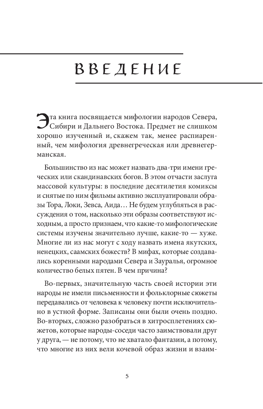 Откройте для себя завораживающий мир духов, шаманов, могучих богатырей и говорящих животных! Вы узнаете, как ворон-демиург создал вселенную и почему животные появились раньше людей, как богатырь Альба прорубил русло Енисея, а находчивый шаман Кыкват изгнал из своего селения духа болезни. Вам встретятся дикие люди – чучуны, – похожие на снежного человека, великаны менквы, водные духи сюллюкюны, якутские демоны абаасы и чукотские злые духи келе.