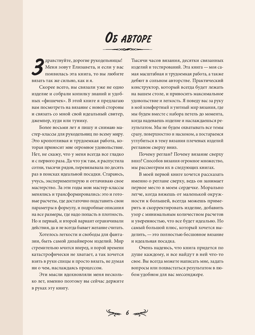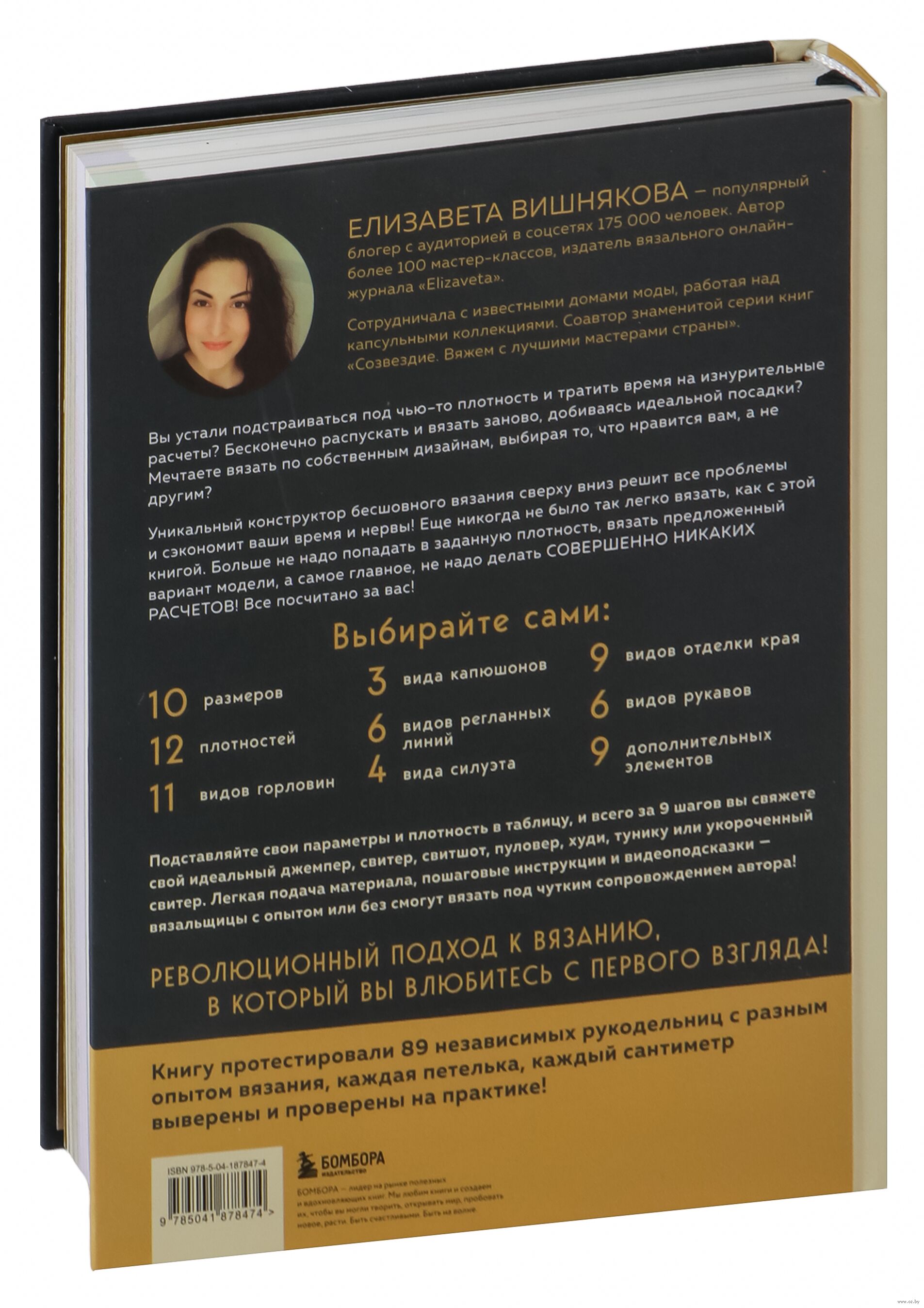 Уникальный конструктор бесшовного вязания сверху вниз решит все проблемы и сэкономит ваши время и нервы! Еще никогда не было так легко вязать, как с этой книгой. Больше не надо попадать в заданную плотность, вязать предложенный вариант модели, а самое главное, не надо делать СОВЕРШЕННО НИКАКИХ РАСЧЕТОВ! Все посчитано за вас!