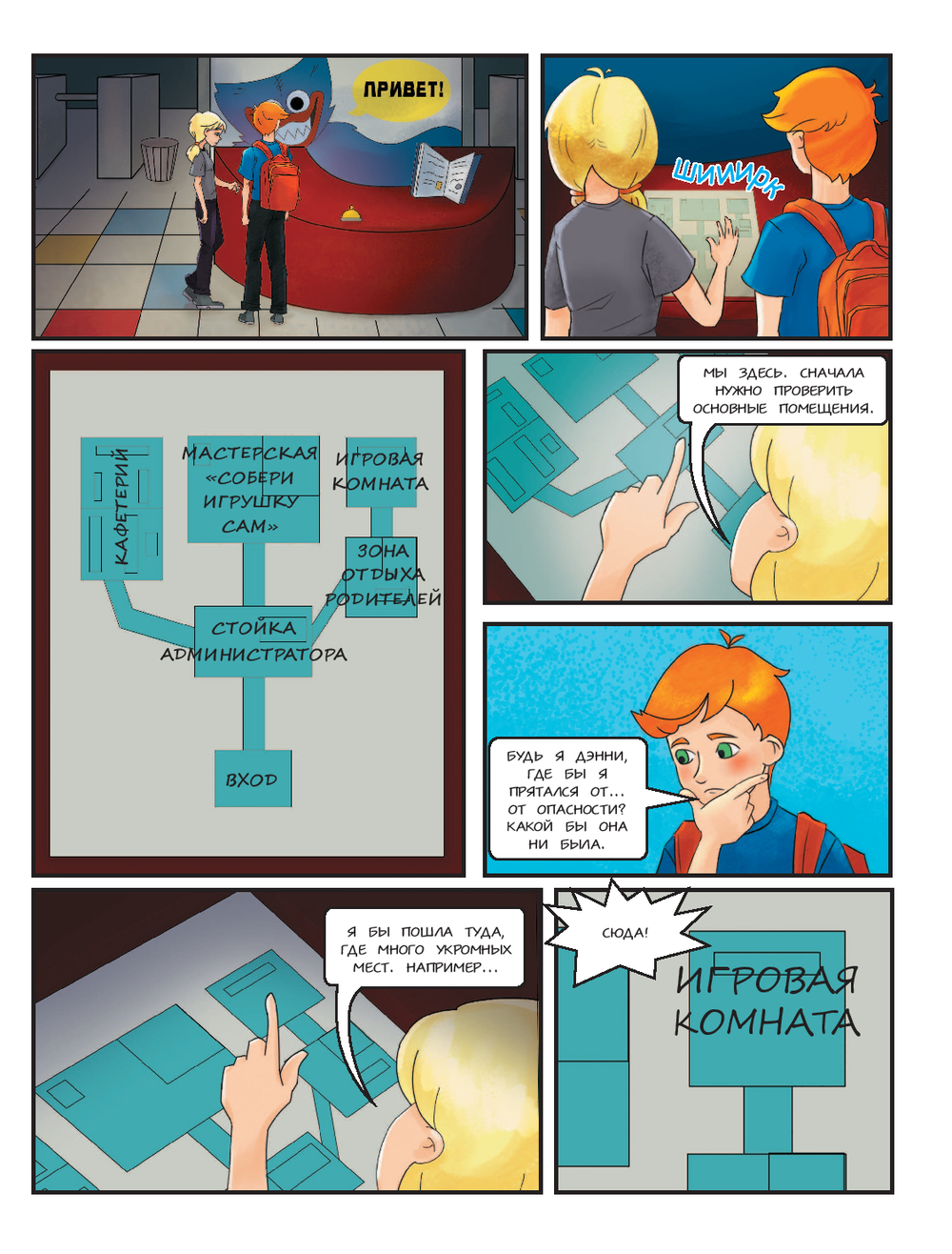 Популярная игра Poppy Playtime теперь в формате комикса! Перед тобой – продолжение хоррор-приключений Алекса и Ланы, которым на этот раз предстоит столкнуться с Хагги Вагги и другими обитателями зловещей фабрики игрушек.