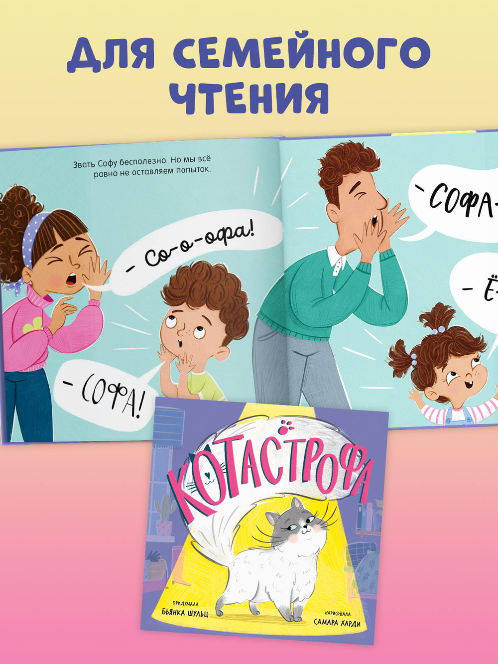 Автор книжки-картинки "КОТастрофа" Бьянка Шульц посвятила историю про Софу своему коту и "всем мурлыкающим пушистикам". Действительно, несмотря на то что главная героиня обладает яркой индивидуальностью, многие владельцы котиков узнают в Софе своих питомцев. А иллюстратор Самара Харди наполнила книгу юмором и любовью к котам.
