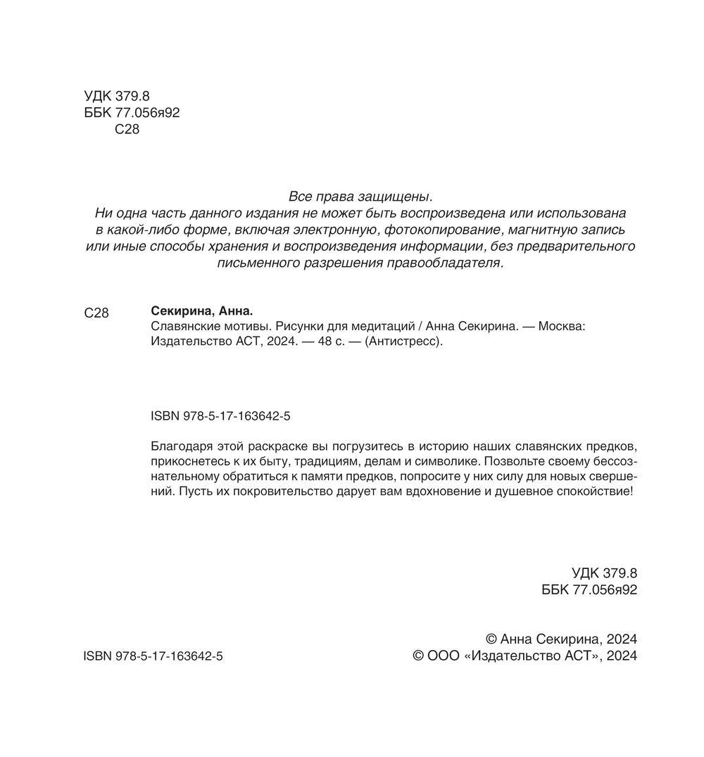 Благодаря этой раскраске вы погрузитесь в историю наших славянских предков, прикоснетесь к их быту, традициям, делам и символике. Позвольте своему бессознательному обратиться к памяти предков, попросите у них силу для новых свершений. Пусть их покровительство дарует вам вдохновение и душевное спокойствие!