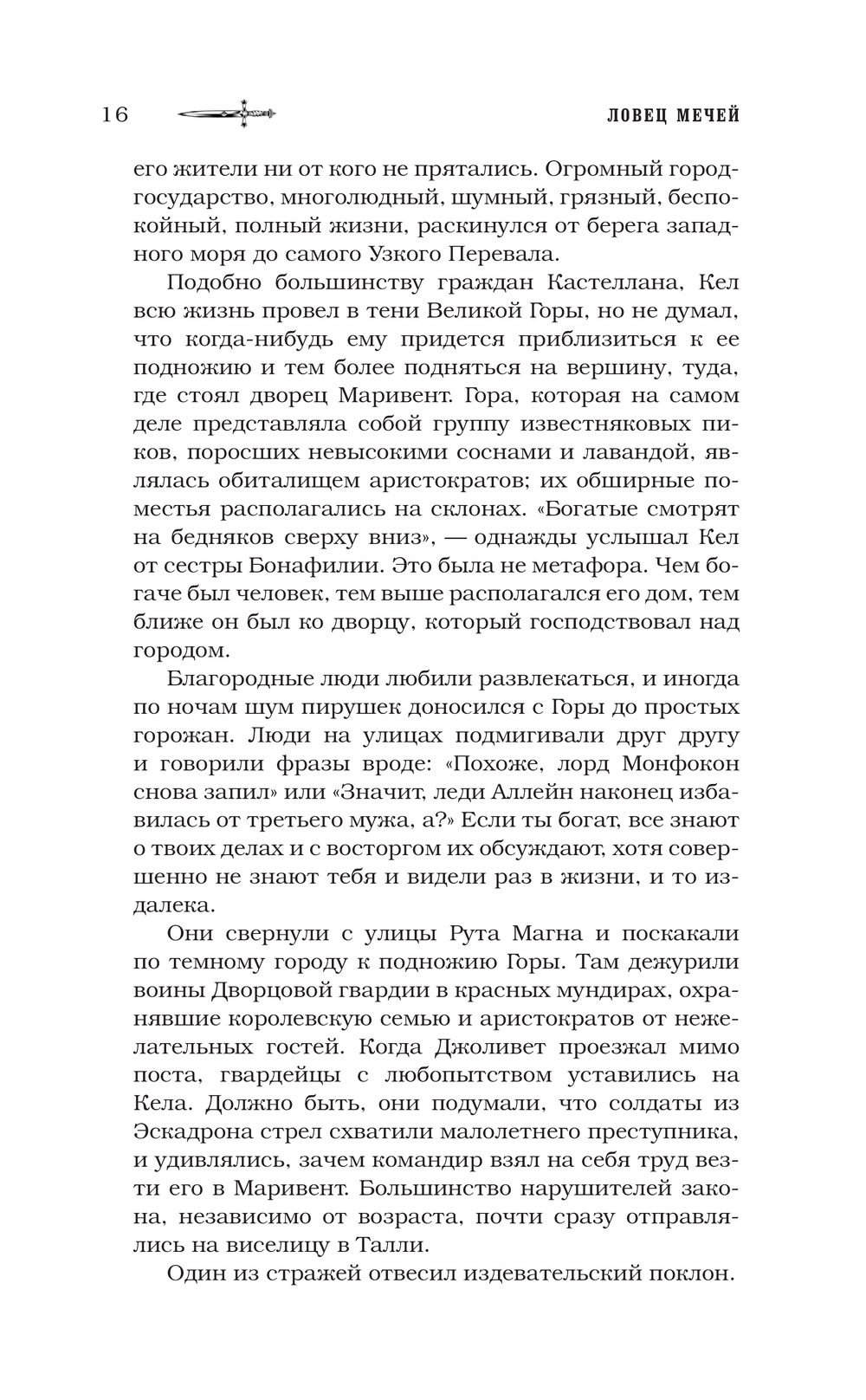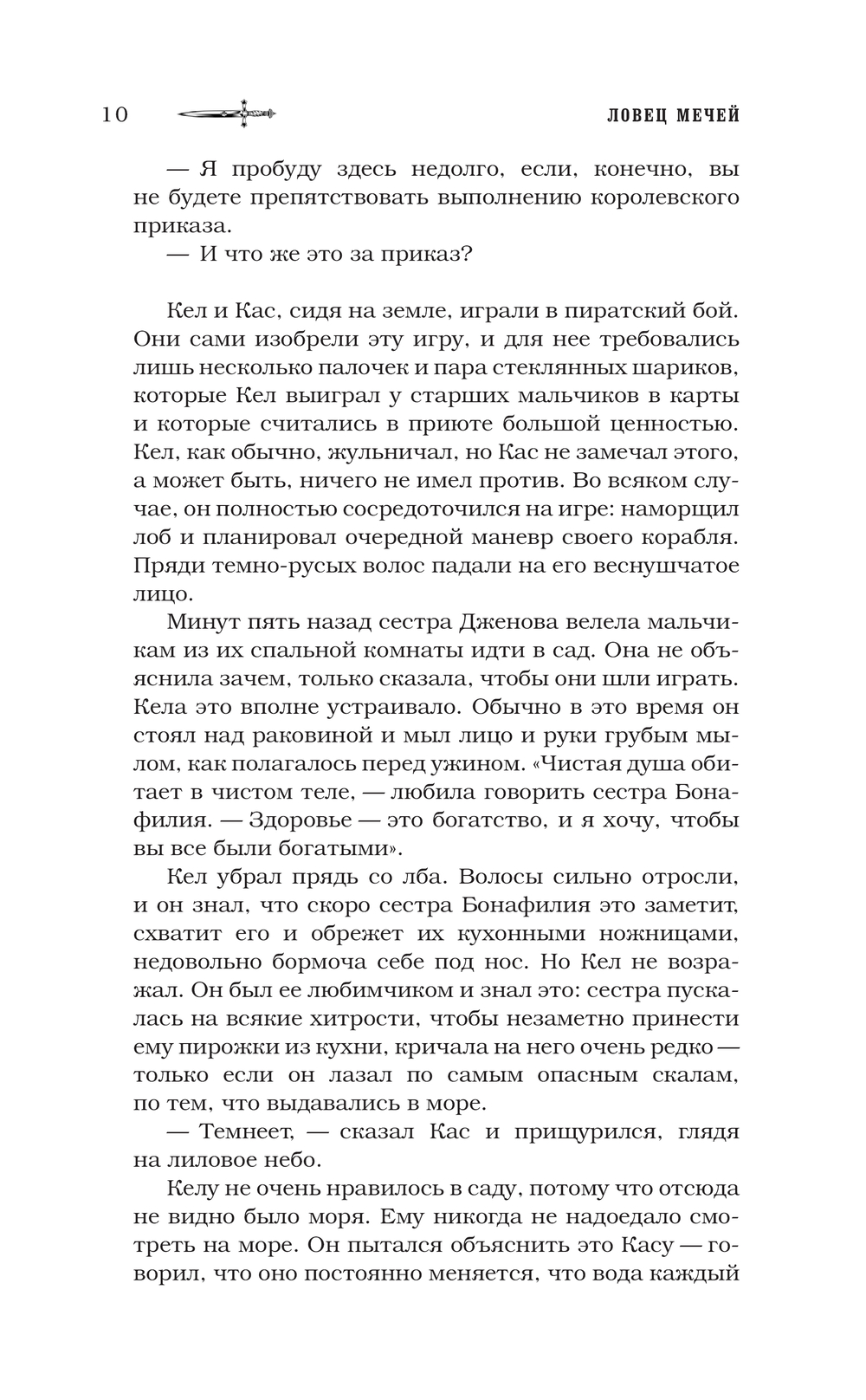 Сирота Кел оказывается оторван от привычной жизни. Ему предстоит стать Ловцом мечей – двойником наследника престола, принца Конора Аурелиана. Они с Конором близки как братья, но судьба Кела – умереть за принца. Другого будущего быть не может.