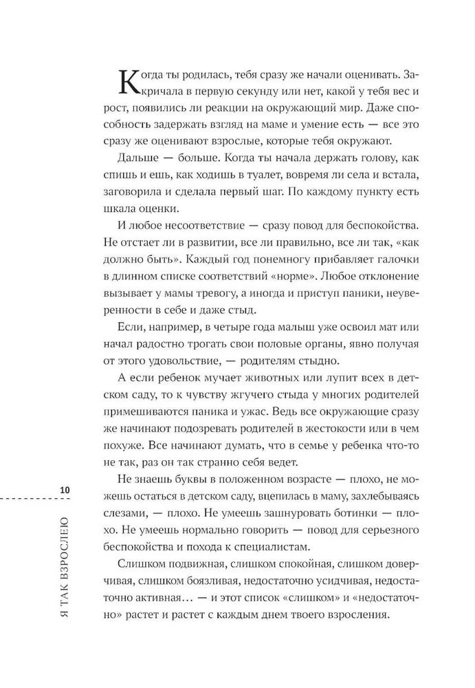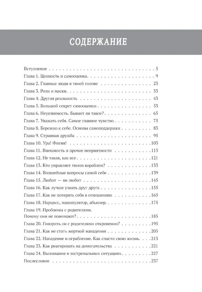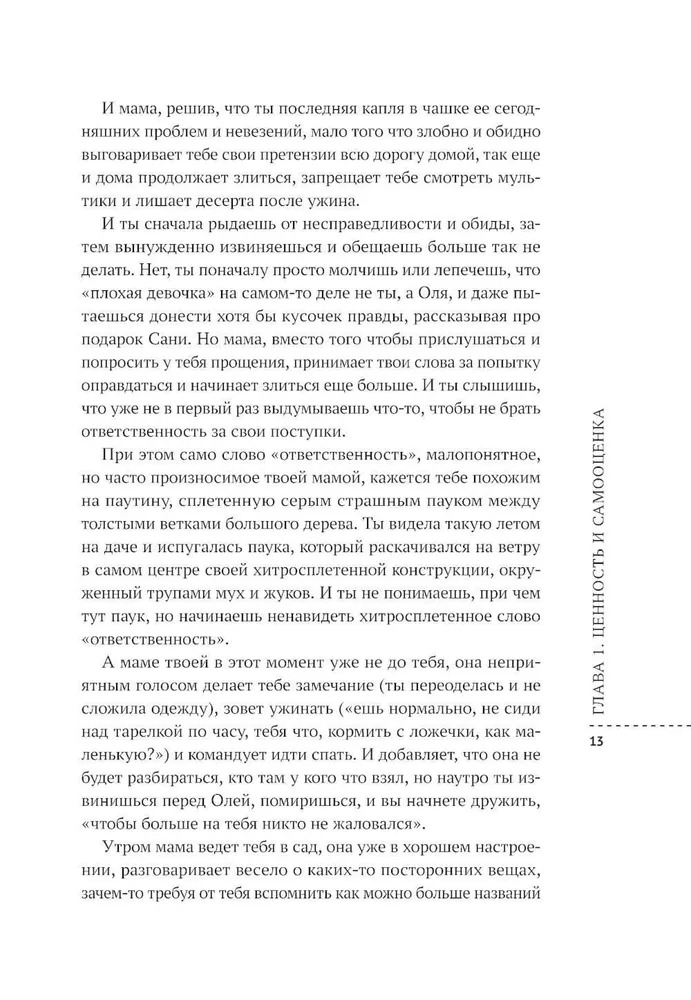 И в этой книжке ты не встретишь ничего из серии "ты же девочка", здесь нет пустых позитивных советов из серии "полюби себя", "будь добрее", "заведи себе друзей", "займись чем-нибудь интересным". Все эти штампы даже скучно обсуждать. Гораздо интереснее – избавиться от других, гораздо более важных, ограничений и установок общества, которые не так очевидны. И еще интереснее – разобраться с нашими внутренними страхами и сомнениями, которые часто мешают жить радостно и свободно.