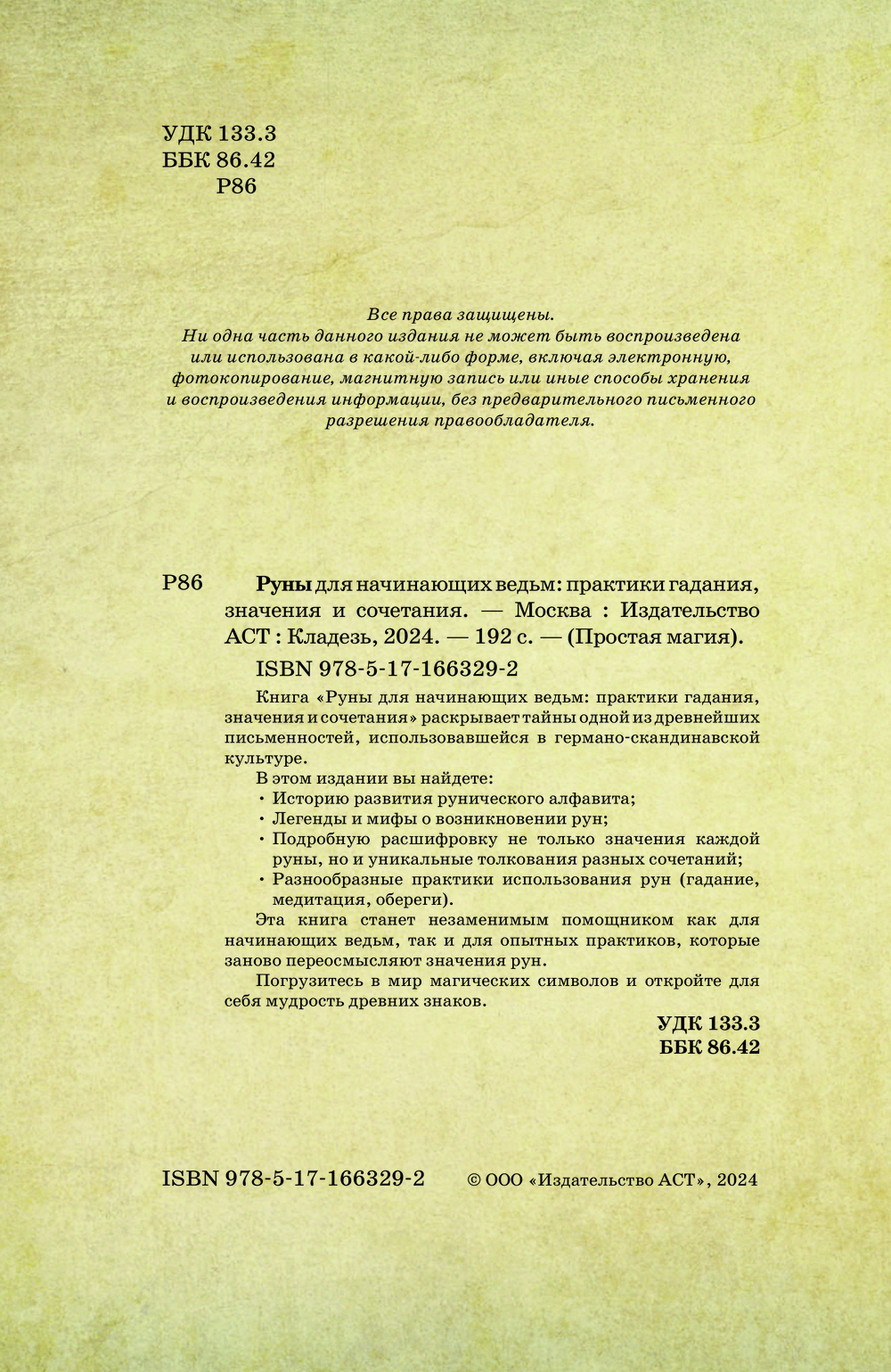 Эта книга станет незаменимым помощником как для начинающих ведьм, так и для опытных практиков, которые заново переосмысляют значения рун.